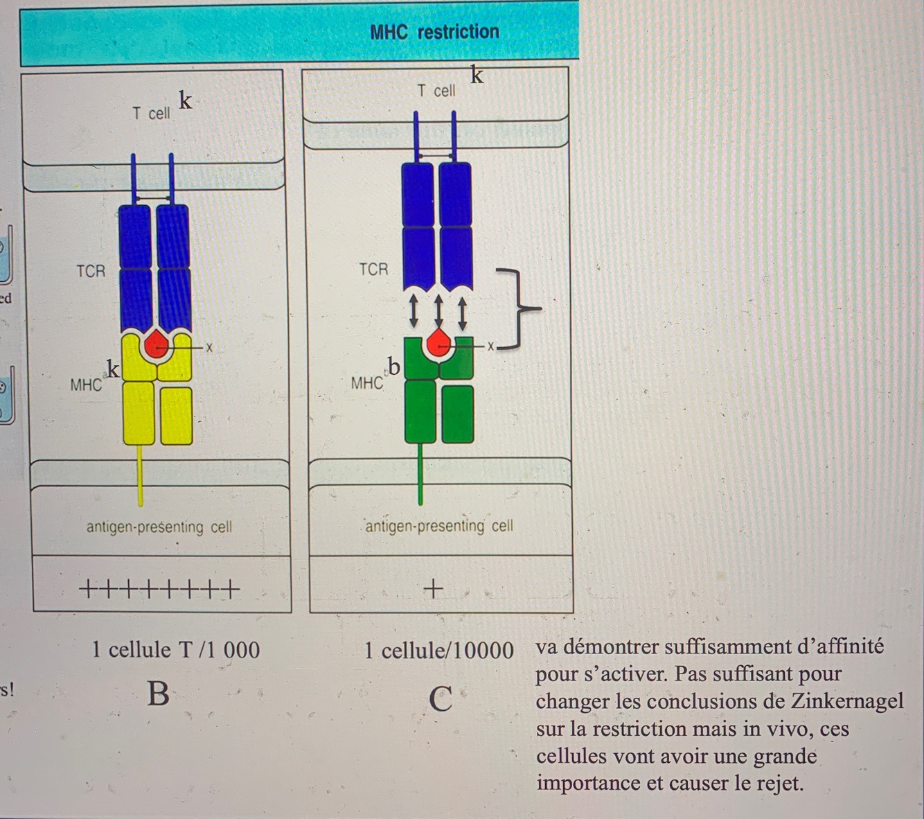 —> certains RcT éduqués à reconnaitre H-2k peuvent parfois reconnaitre d’autres haplotypes, dont H-2b