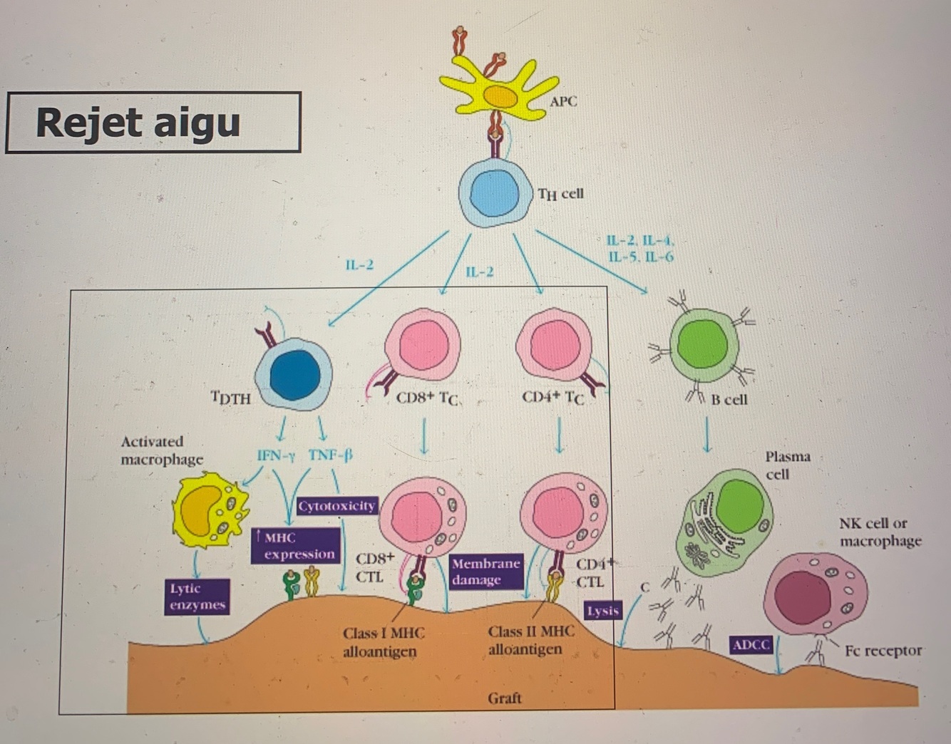 • influx of immune cells into the graft (Among these are T cells, especially CD4 , and APCs, often macrophages)