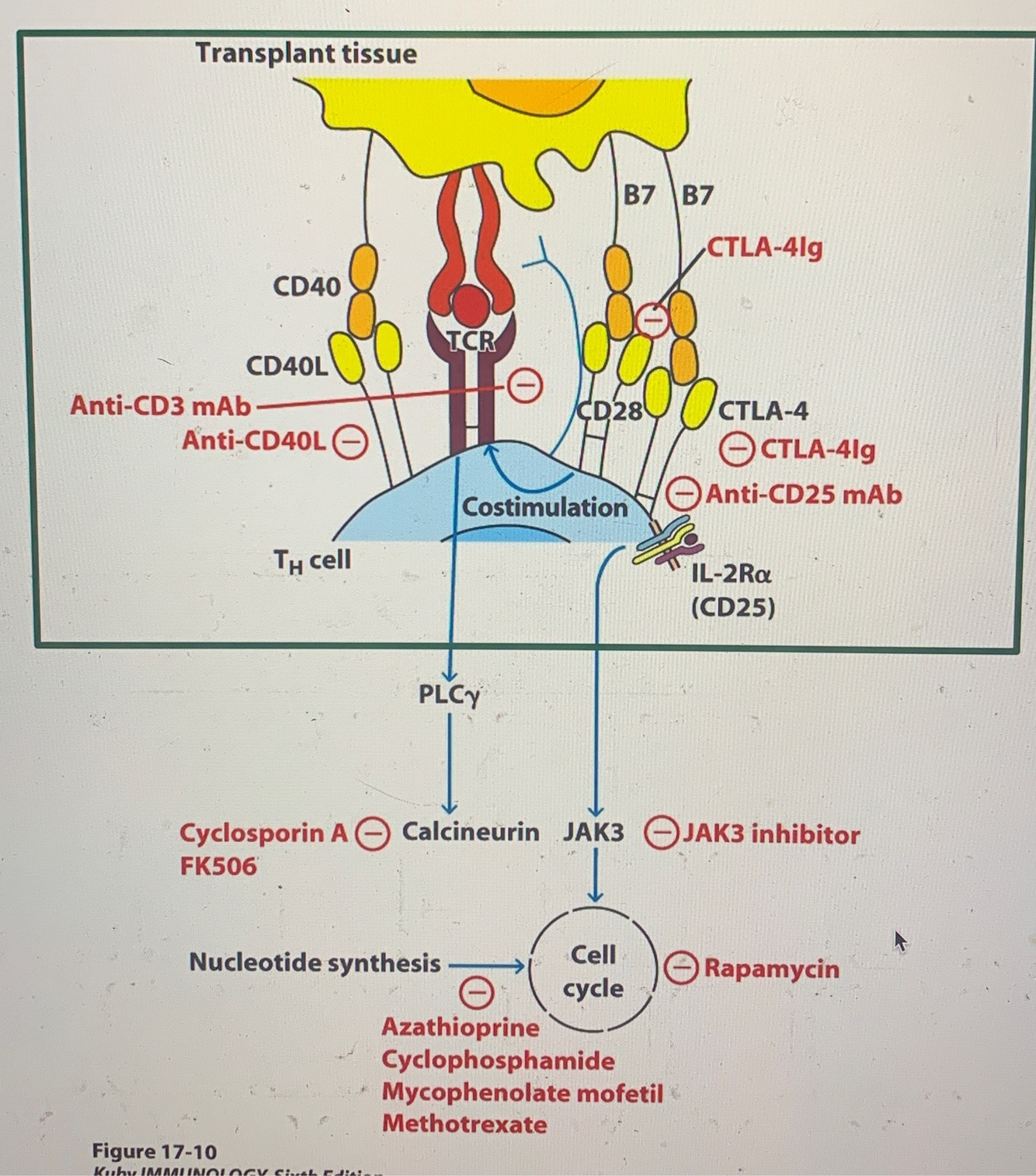 - CTLA4-Ig: Empêche co-stimulation = LT deviennent anergiques—> greffe survie