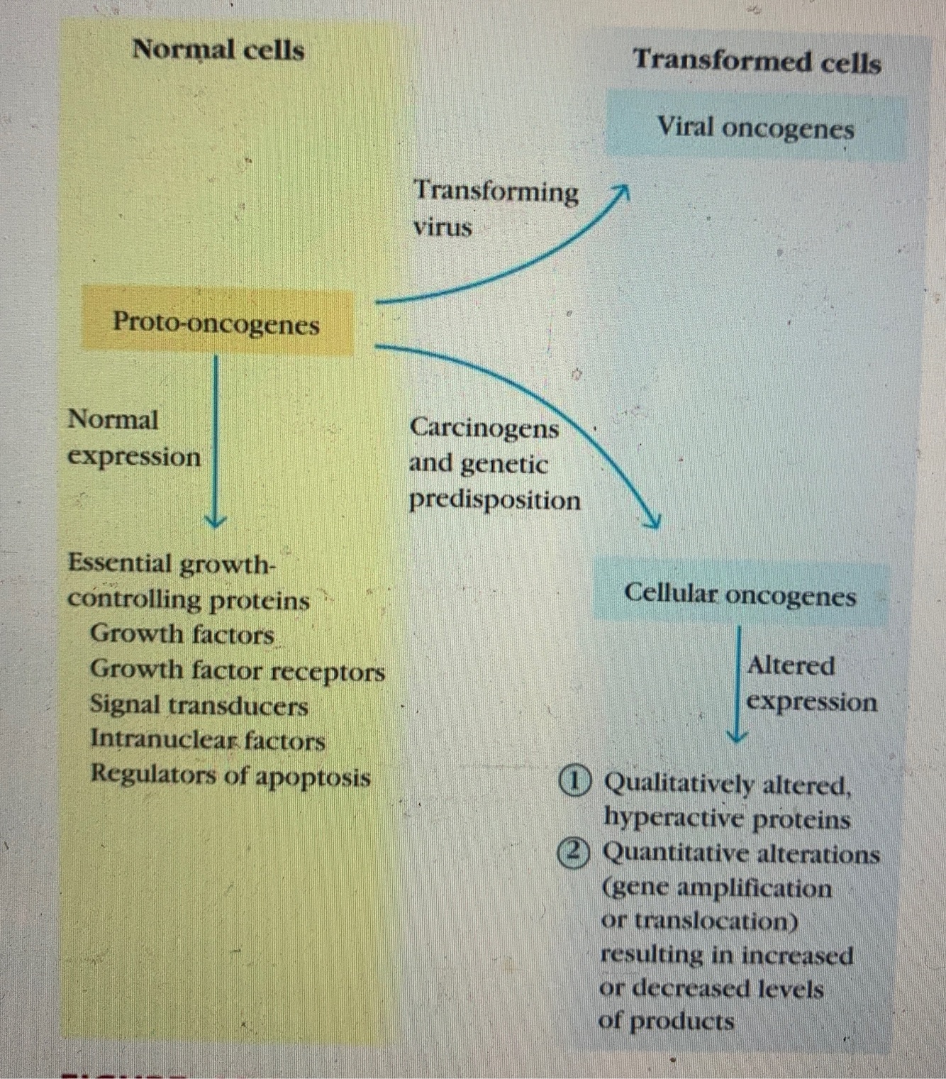 Oncogene cellulaire: Proto oncogene muté ou altéré - produit protéines anormales ou surproduction de protéines = croissance & division pas contrôlée