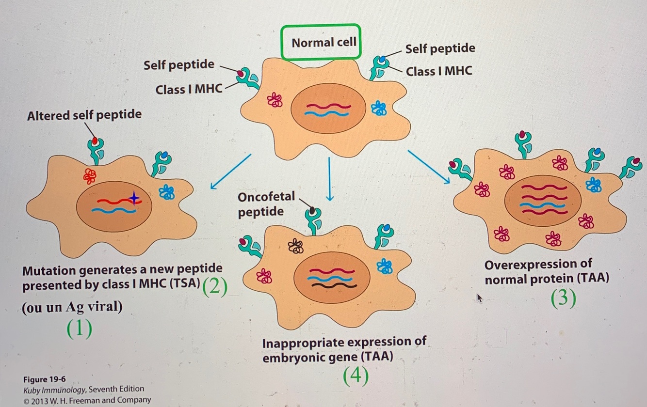 • peuvent provenir d’une mutation qui génère un nouvel épitope T capable de lier le CMH