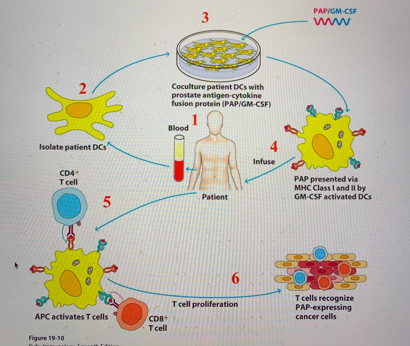 —> T-cell response against PAP expressed on tumor cells in the prostate.
