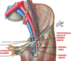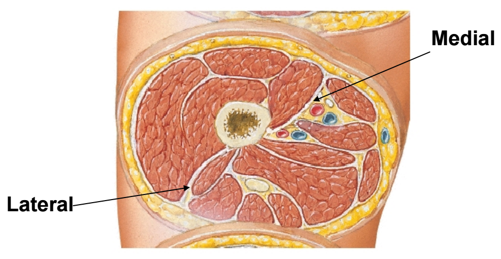 What subdivides the thigh into three anatomical compartments: anterior, medial, and posterior?