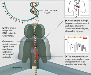 What is the underlying principle of “nanopore” single molecule sequencing?