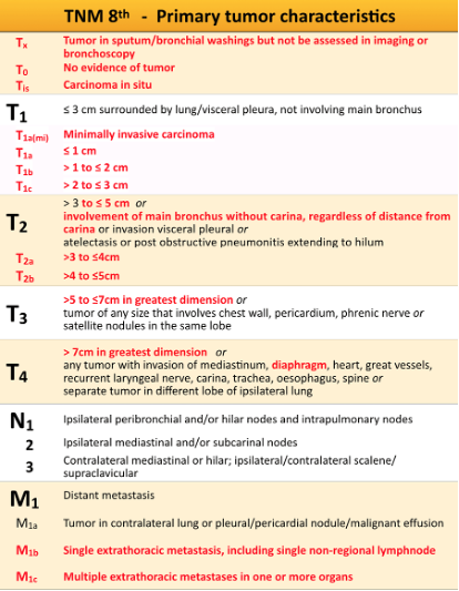 T3 tumors (all potentially resectable) – 5-7 cm in size, chest wall, pericardium, phrenic nerve, parietal pleura