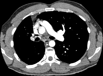 Proximal interruption of the (right) pulmonary artery. Can occur on either side, typically on the side opposite the aortic arch. The distal pulmonary vasculature receives blood from systemic collaterals.