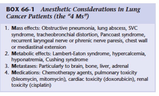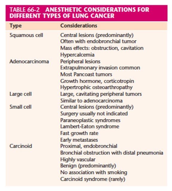 What are the anesthetic considerations for different types of lung cancer? (table)