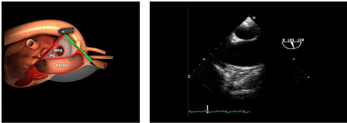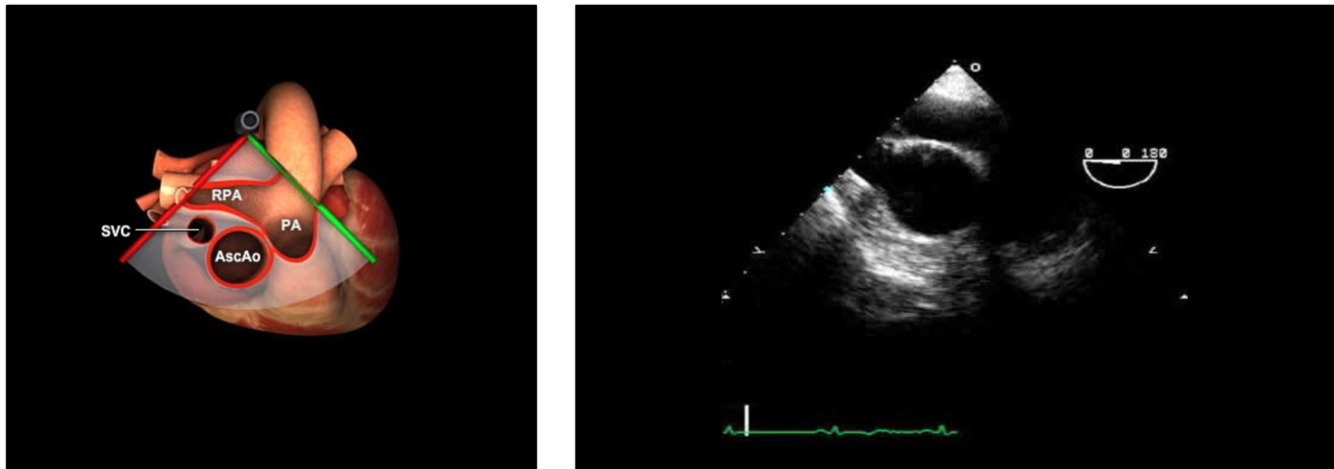 From ME AV SAX (30°), withdraw probe (ascending aorta SAX), rotate the omniplane angle back to 0° (Anteflex a little bit)