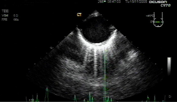 Insert the probe to the ME, sector depth 4-6cm, angle 0°