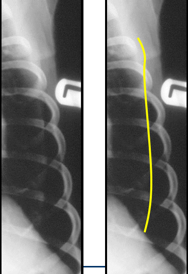 This line extends outside of thoracic cavity – SKIN FOLD!!