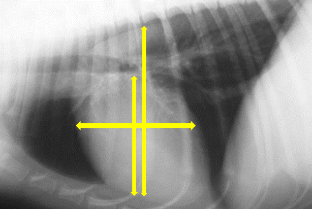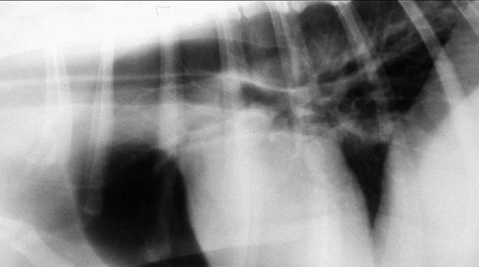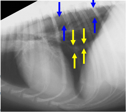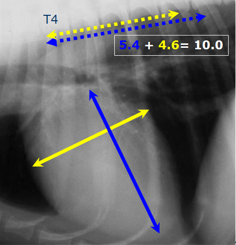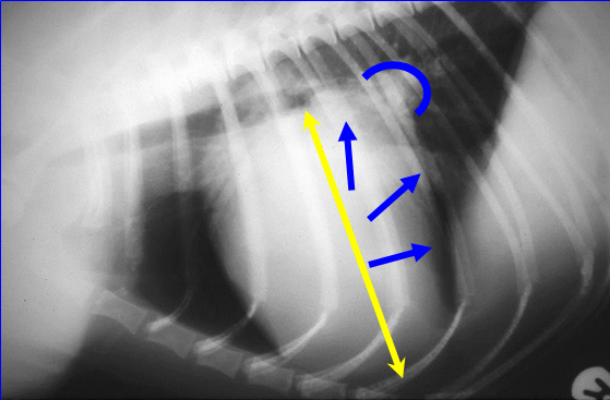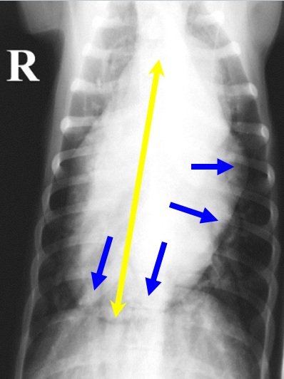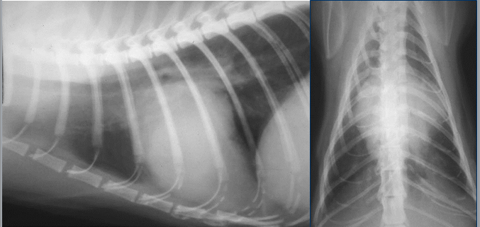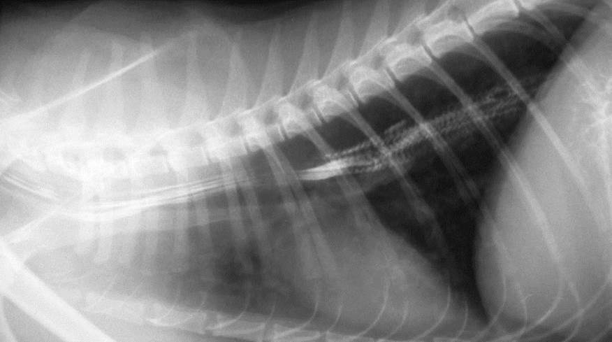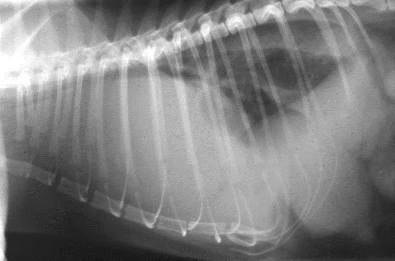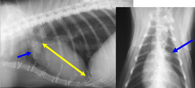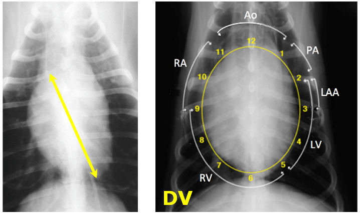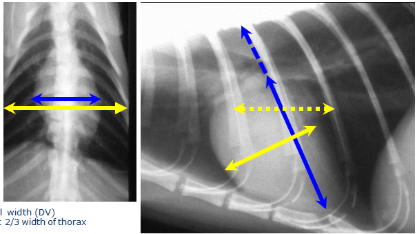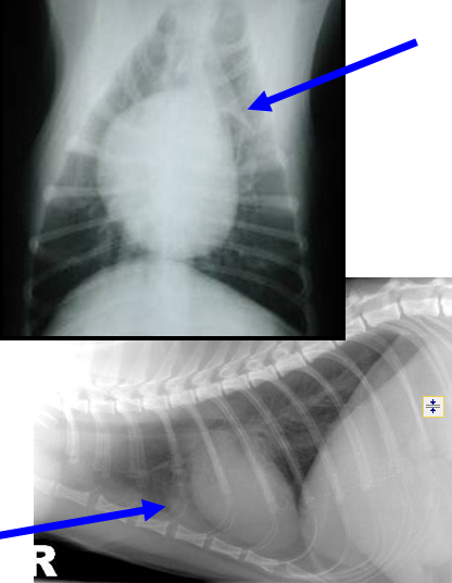 Caudal part relatively normal, wide shoulders – valentines heart, tells us that we have enlarged atria. In cats, cannot really get a good idea about individual chambers