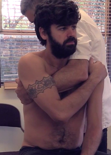 Practitioner passively depresses patients shoulder and abducts arm to 90 degrees Internally rotate shoulder, fully flex elbow joint.