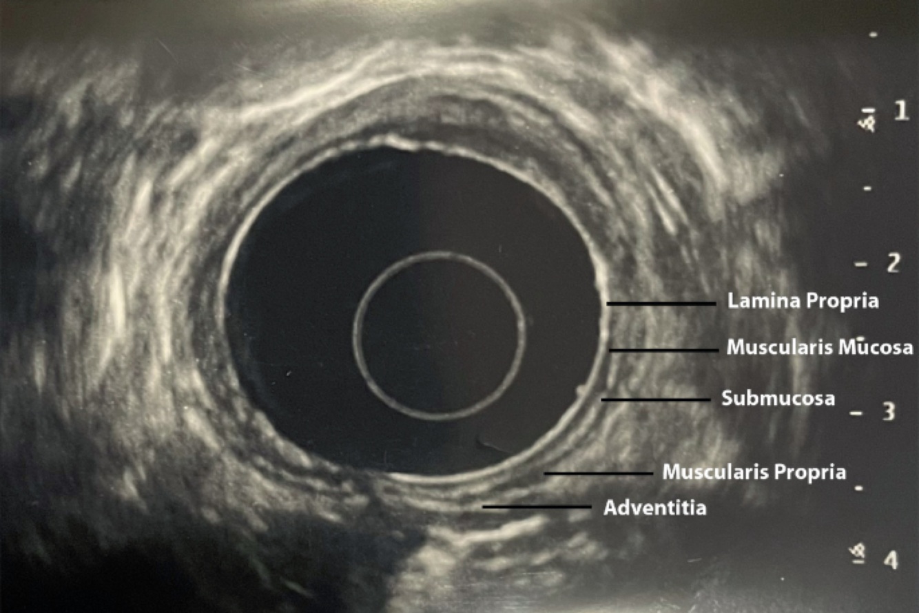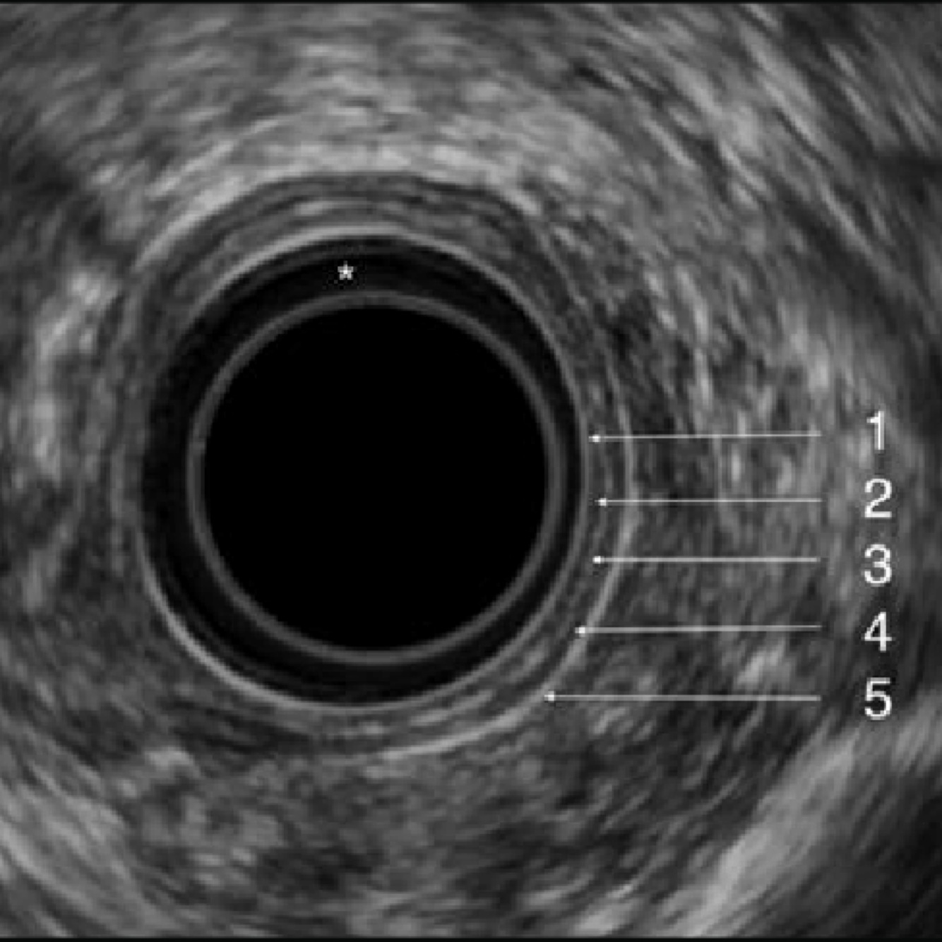 5th (hyperechoic) - paraesophageal tissue/adventitia