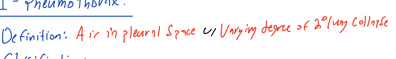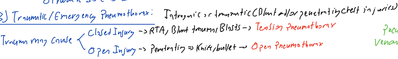 A traumatic Pneumothorax is typically iatrogenic or traumatic. This trauma may lead to 2 types of injury/ pneumothorax.