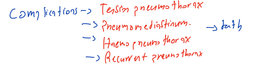 What are the complications of a primary spontaneous pneumothorax?