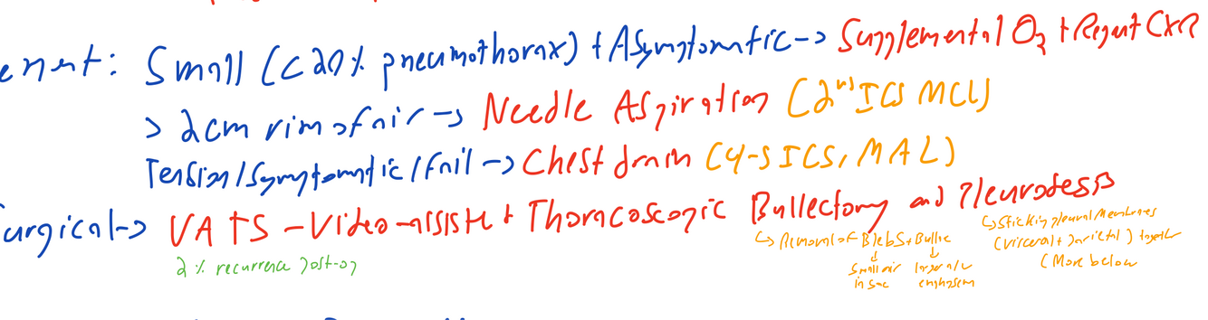How would you manage a simple small and large primary spontaneous pneumothorax?