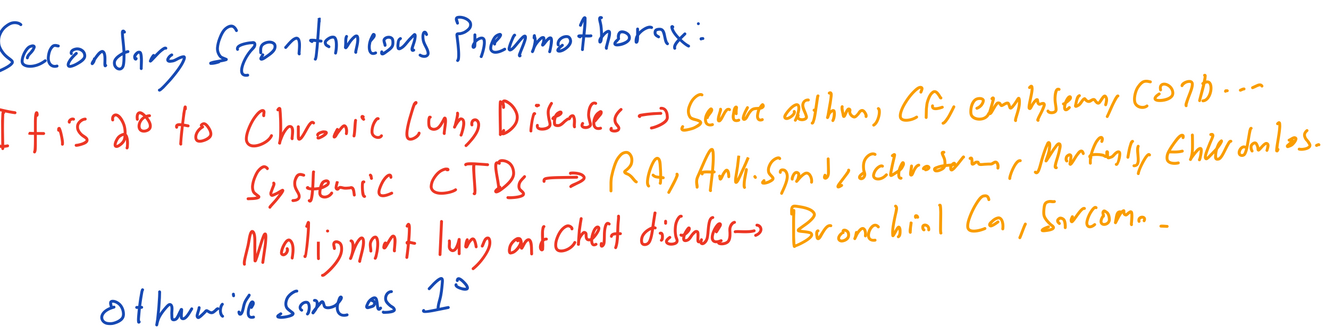 What is a secondary spontaneous pneumothorax and what are some causes?