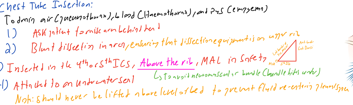Describe the process of a chest drain insertion.