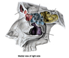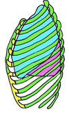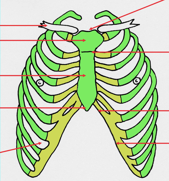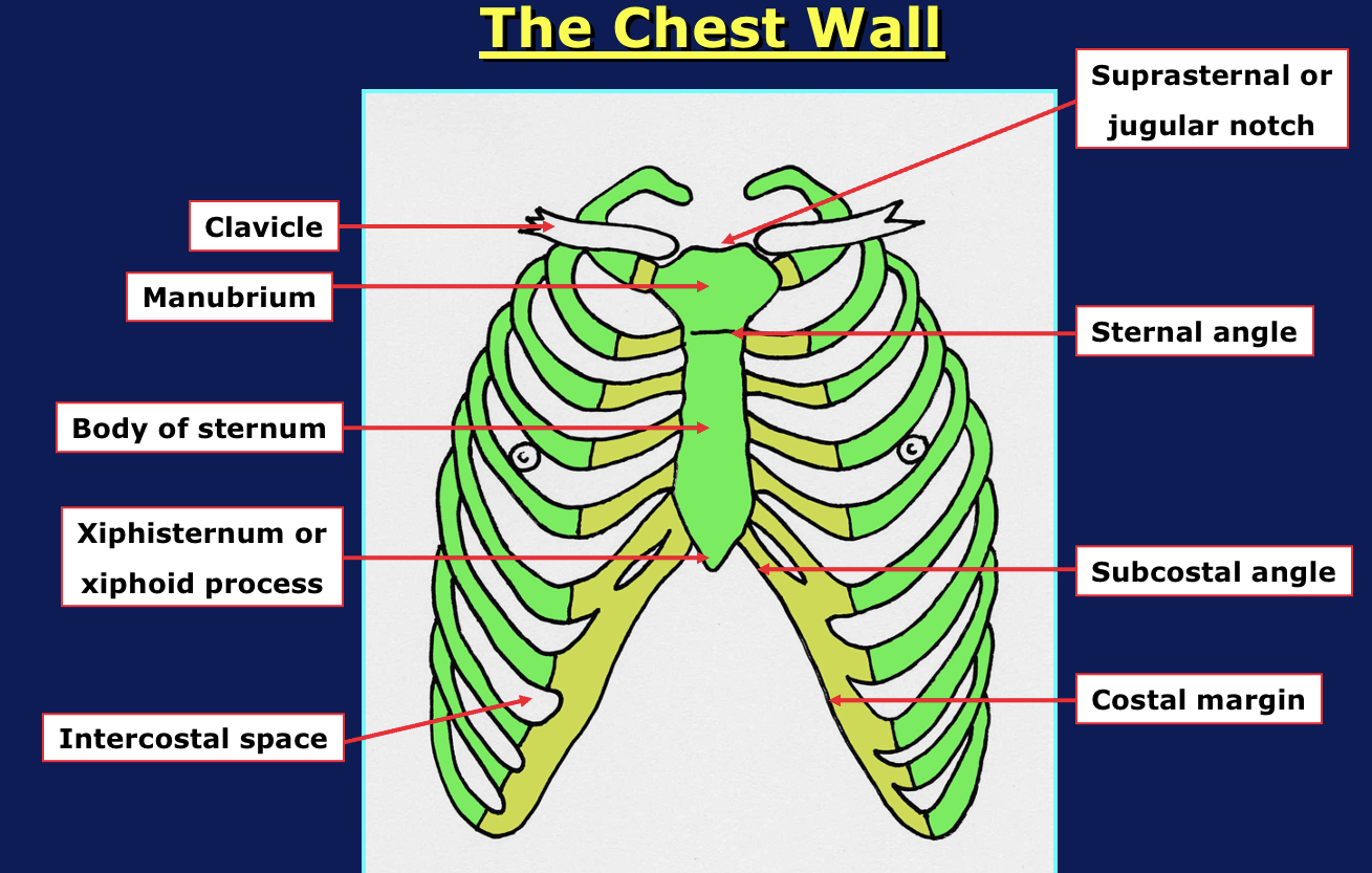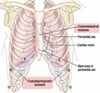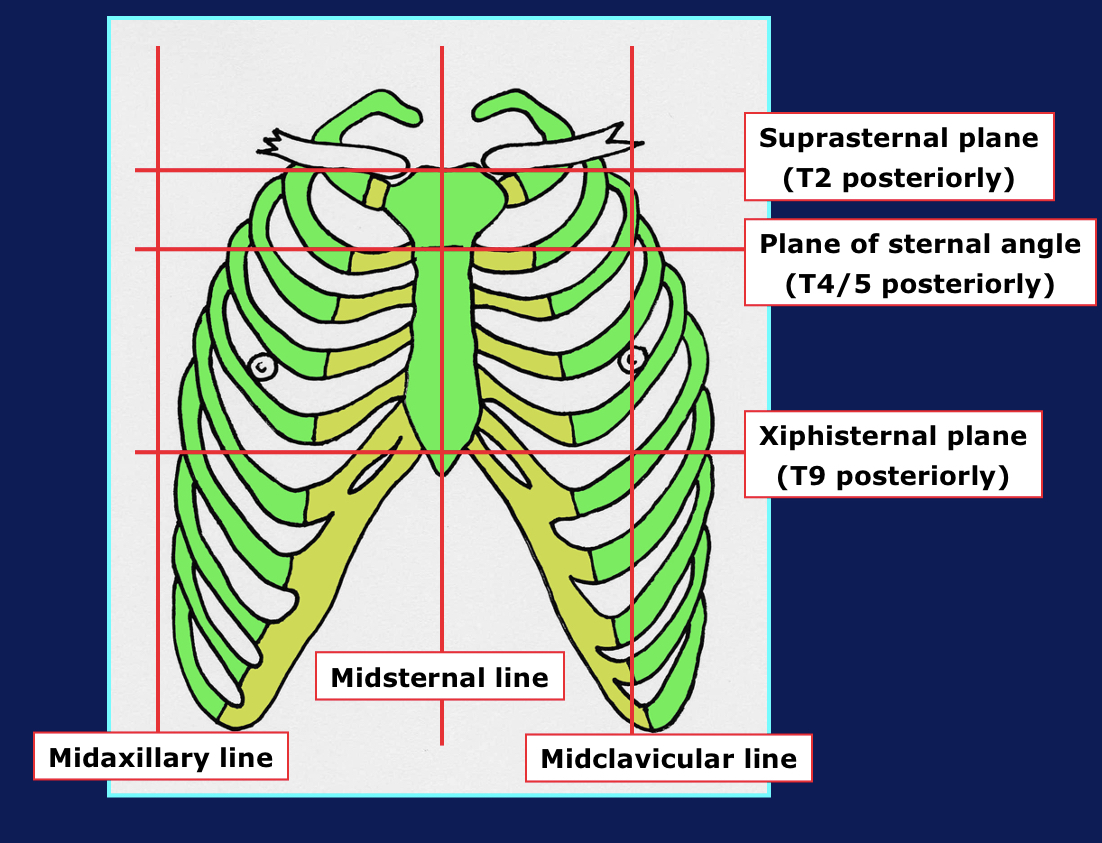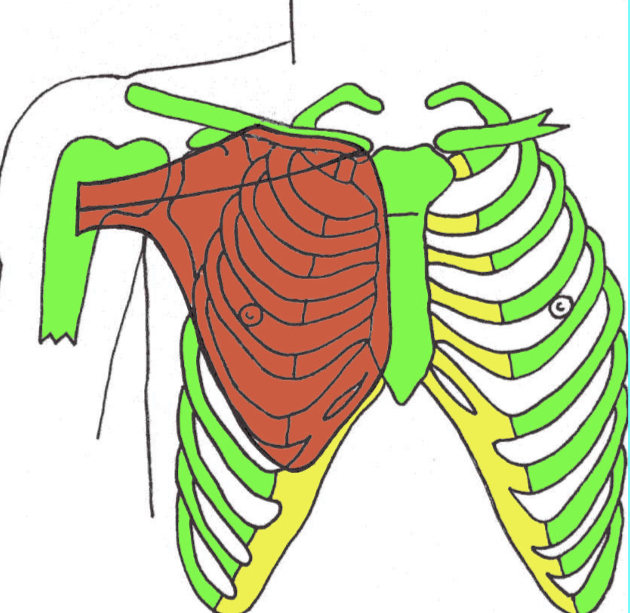 Coracoid process of scapula; ribs 3-5 near their cartilages