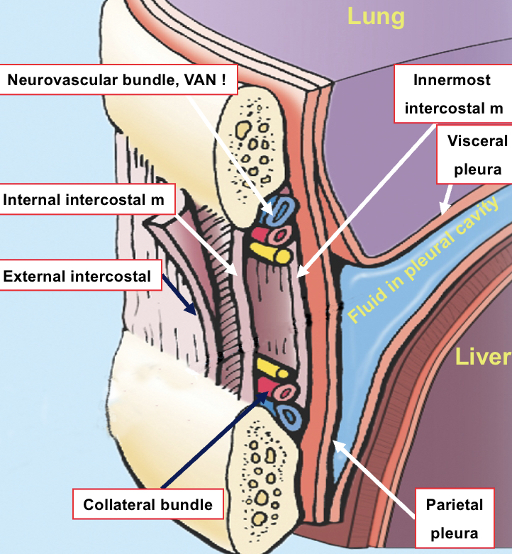 Parietal pleura lines the pulmonary cavities ; neurovascular bundle is found between the internal and innermost ICM