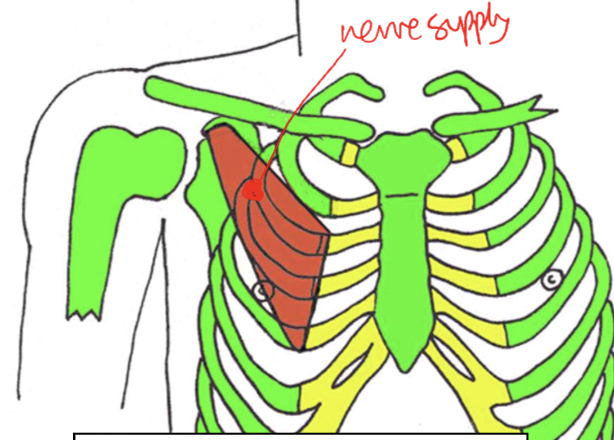 Stabilises the scapula by drawing it anteroinferiorly against the thoracic wall. Nerve supply : medial pectoral nerve (C8-T1)
