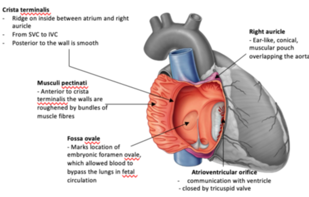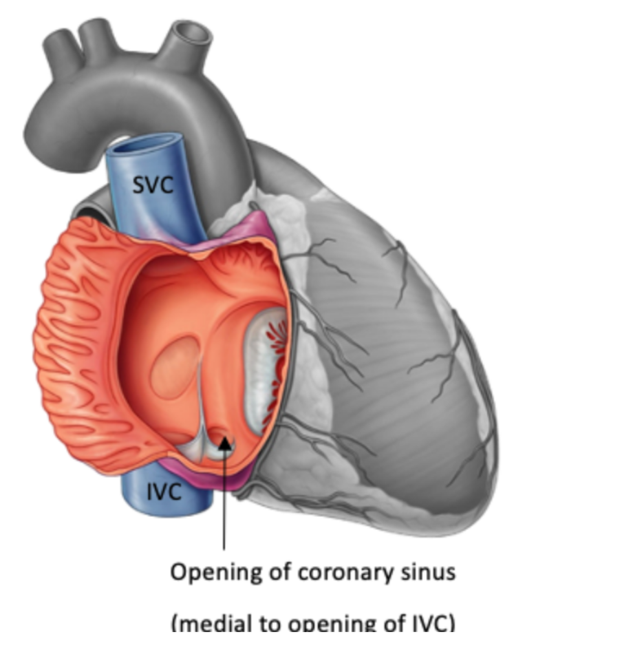 * Right: posterior to ascending aorta and SVC