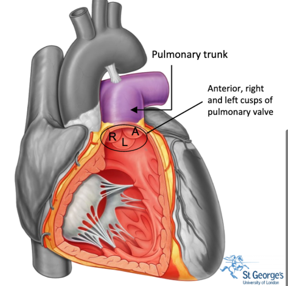 pulmonary valve, 3 semilunar cusps