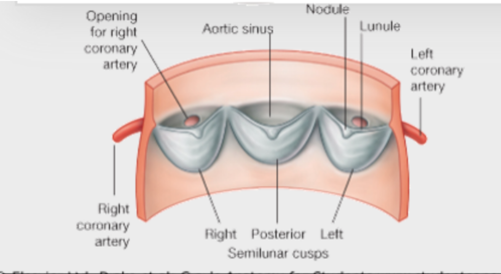 As blood recoils after ventricular contraction, and fills the aortic sinuses formed by the cusps, it is forced into coronary arteries