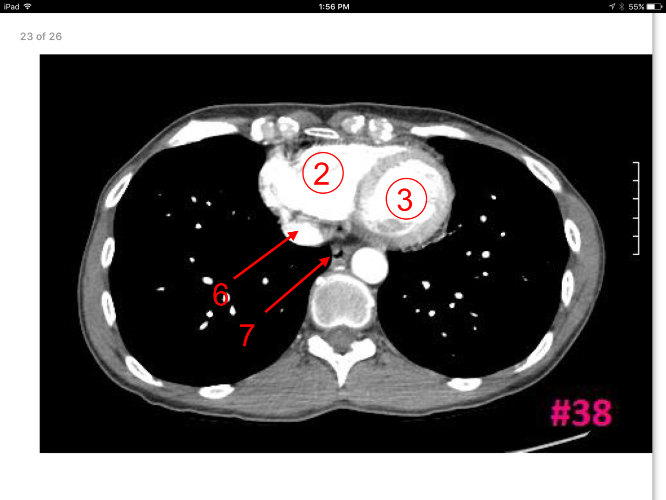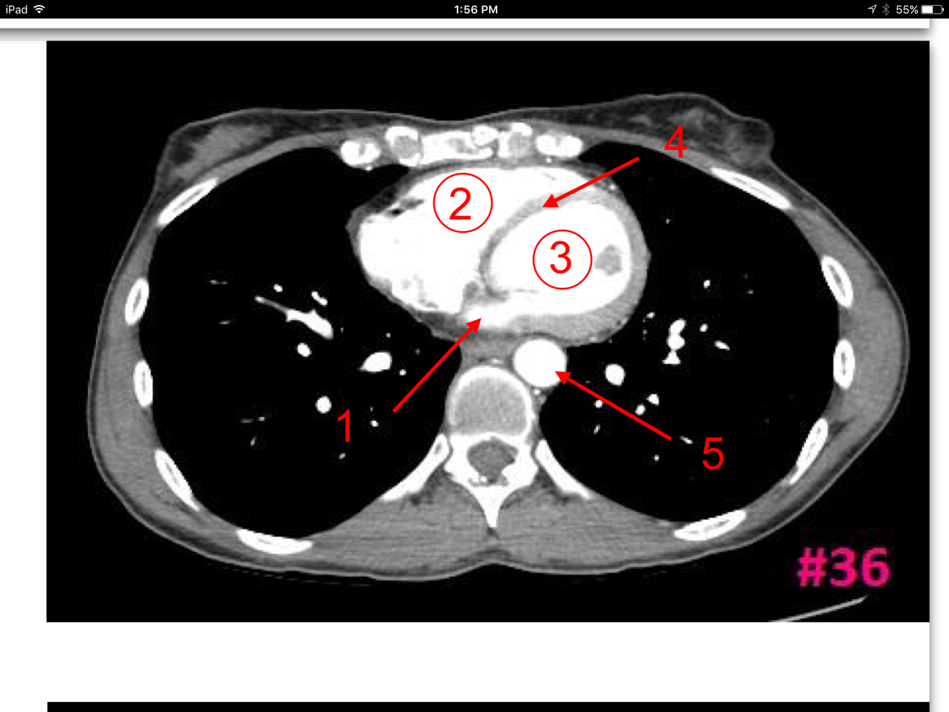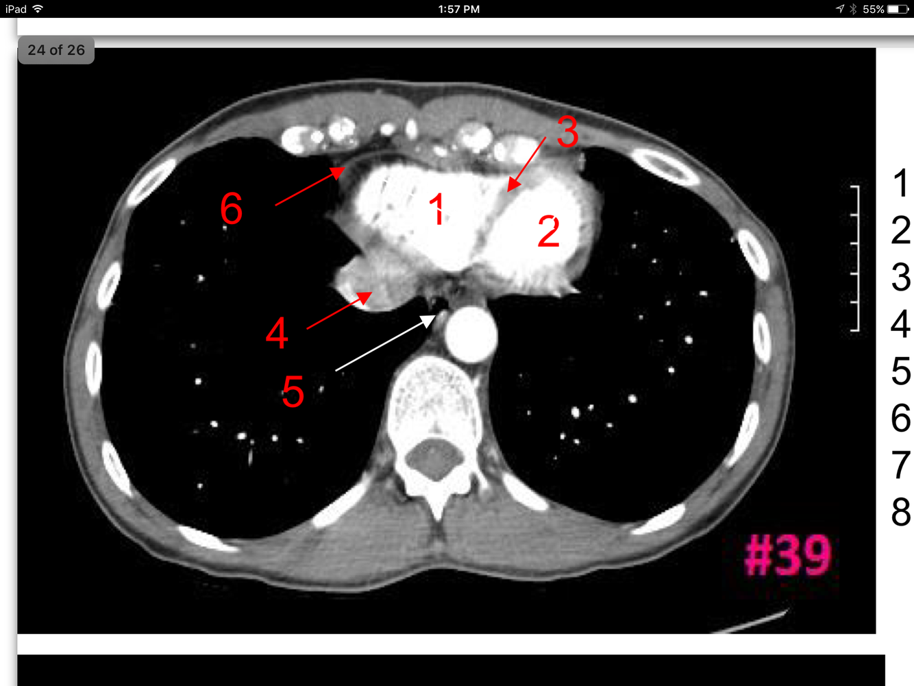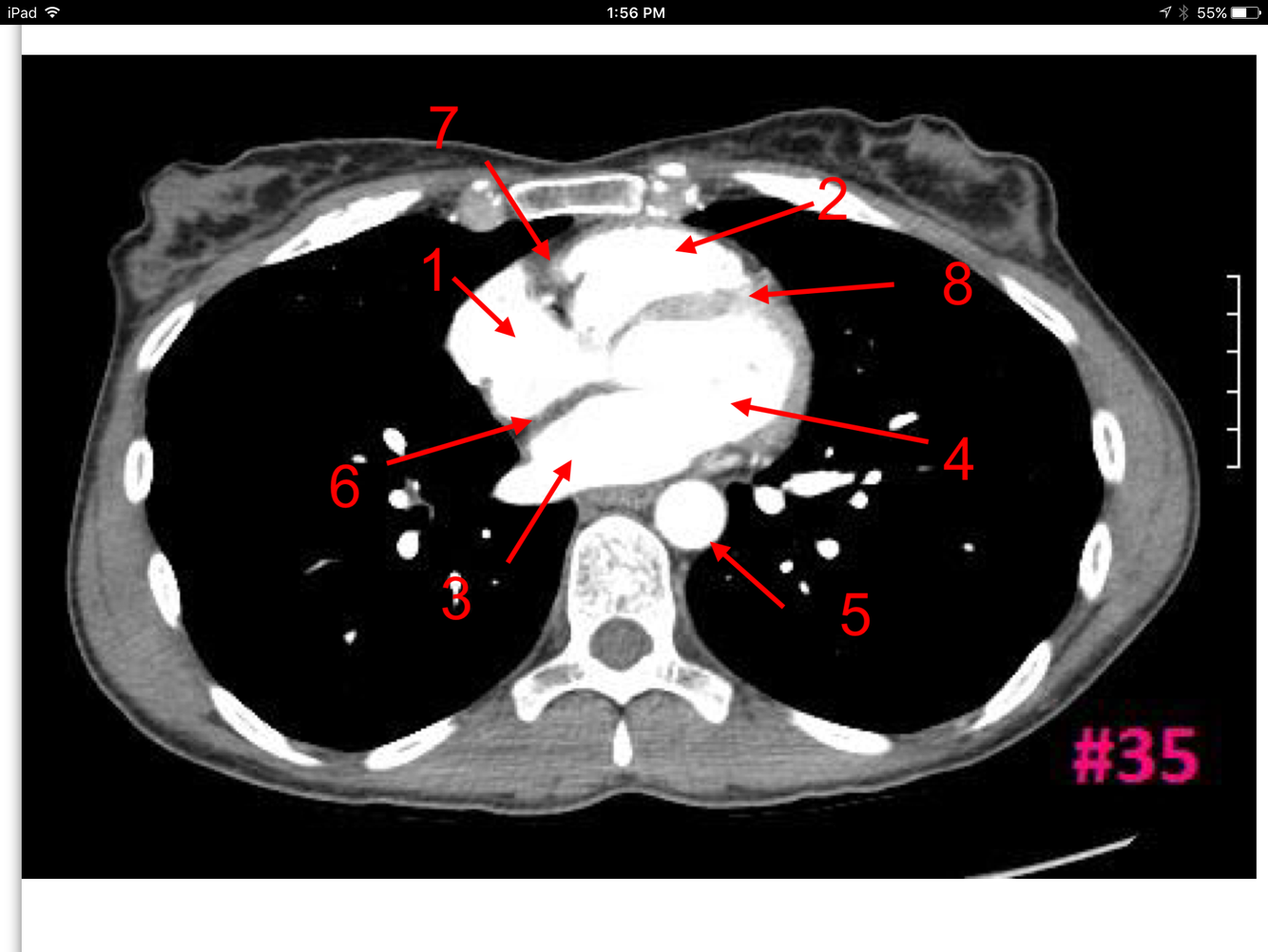 4. Inferior vena cava 5. Esophagus 7. Liver 8. Rt coronary artery