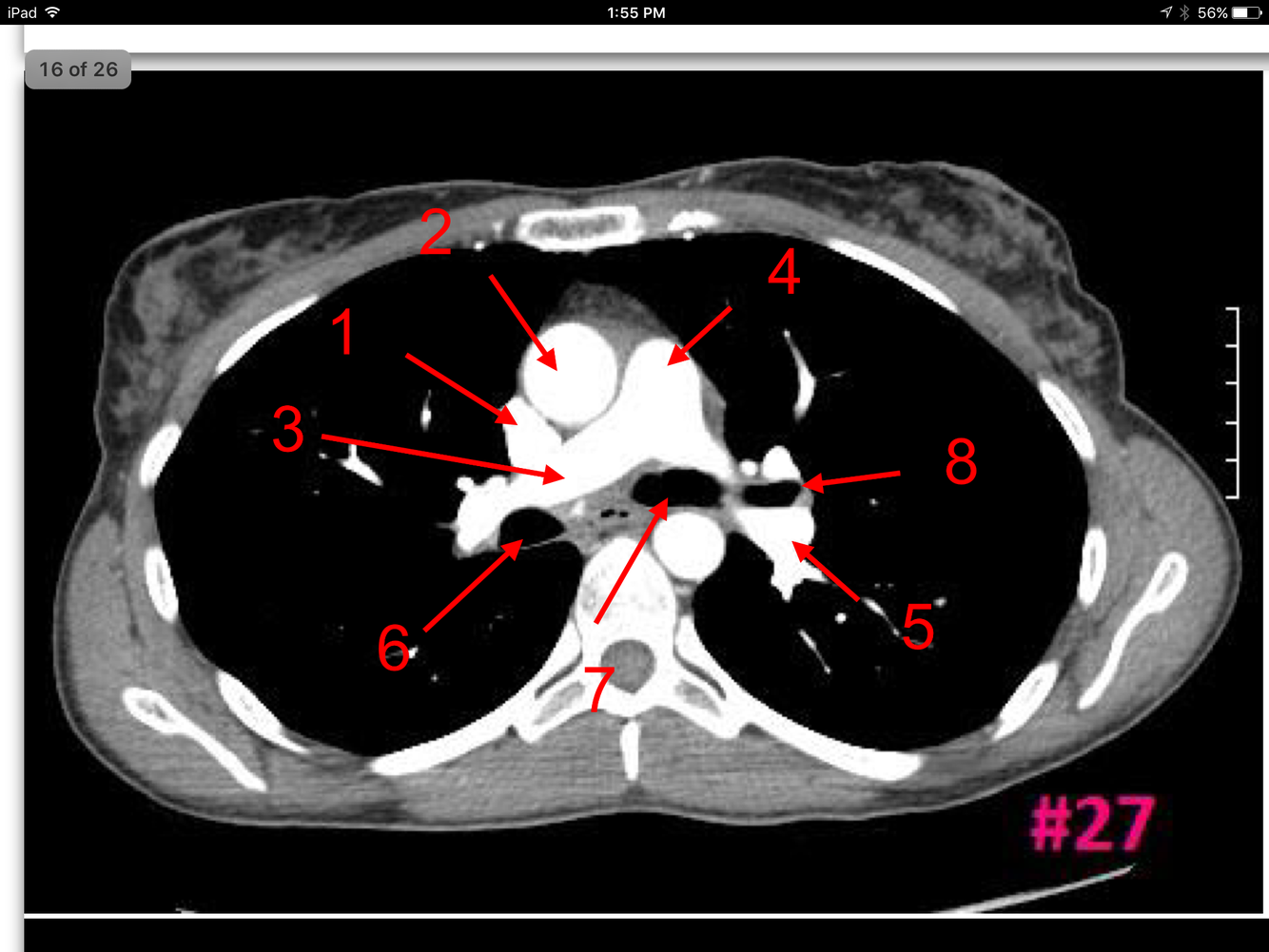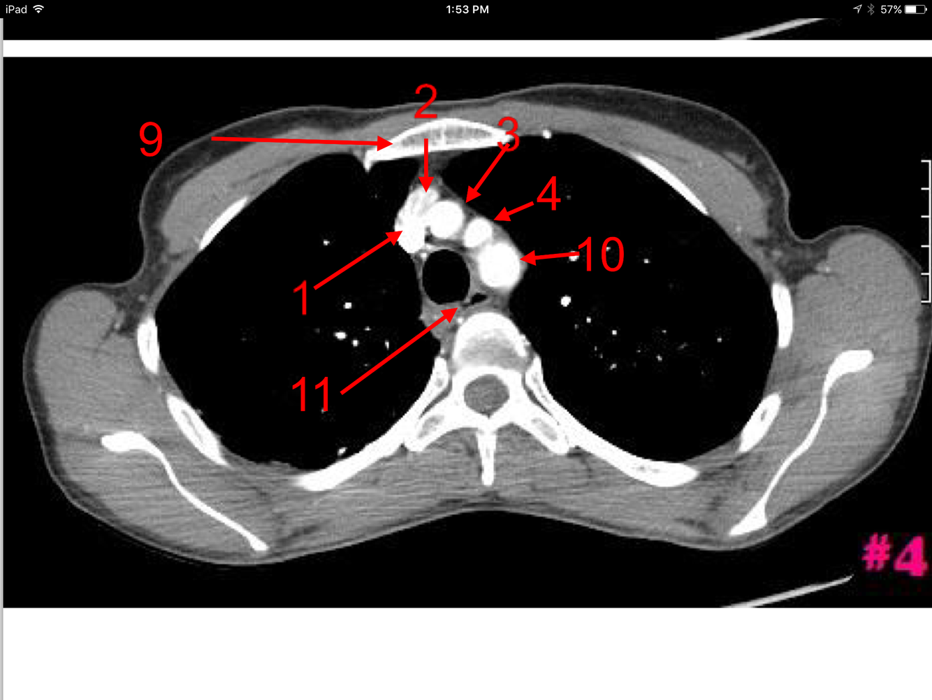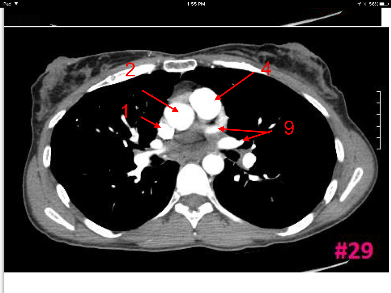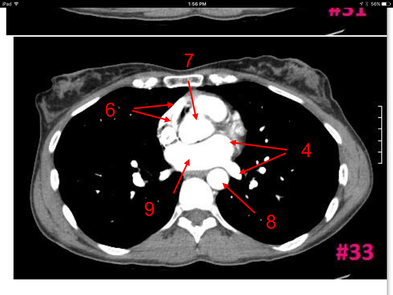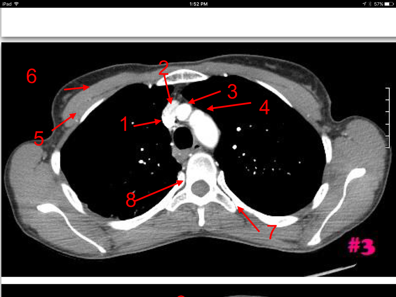 4. Inferior vena cava 5. Esophagus 7. Liver 8. Rt coronary artery