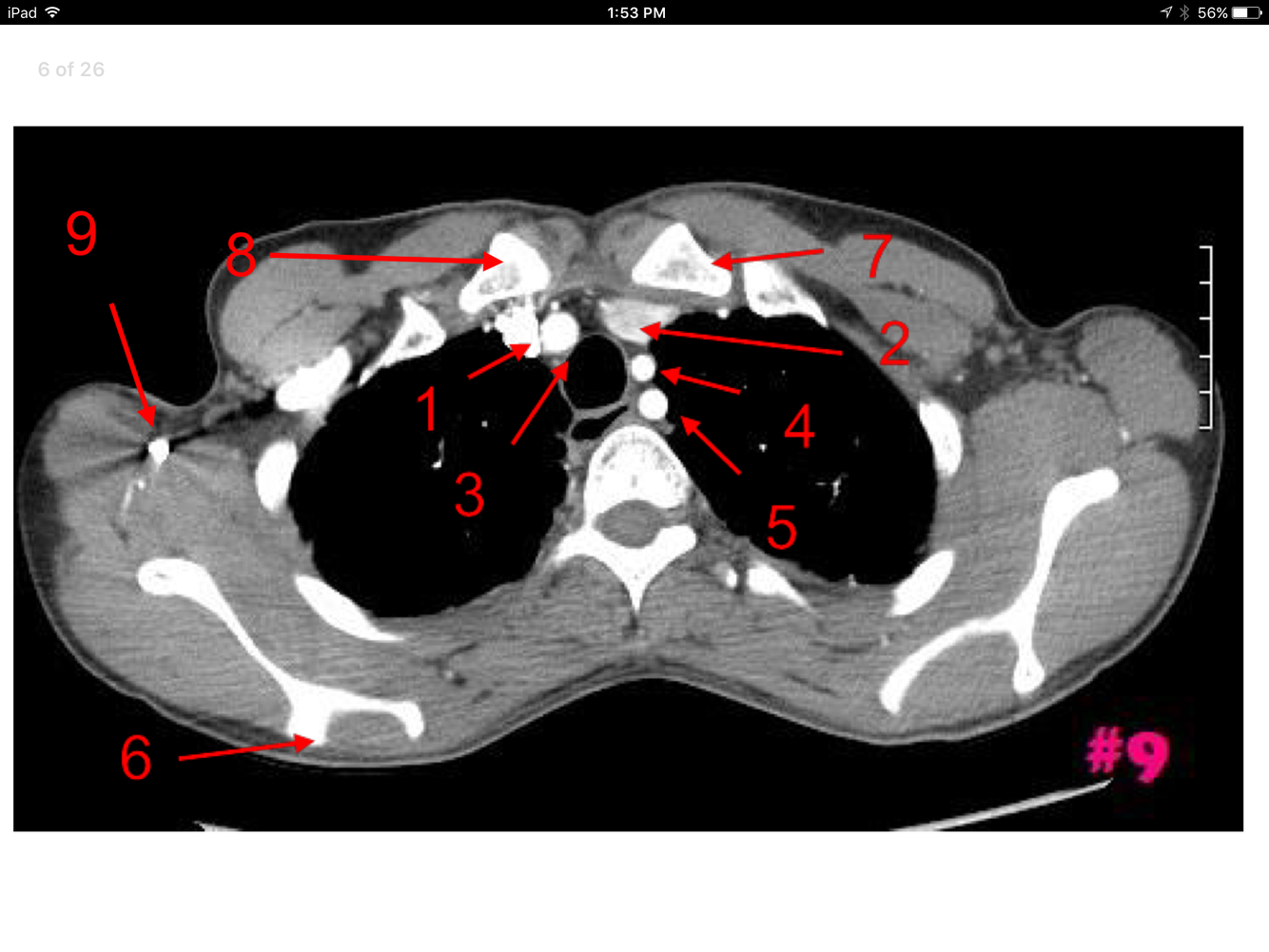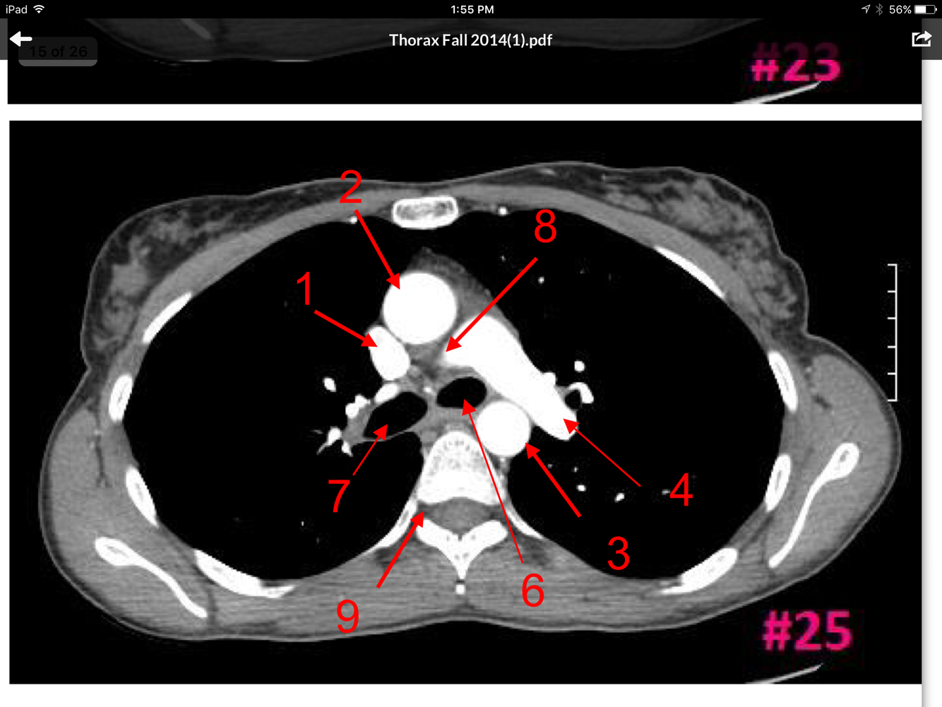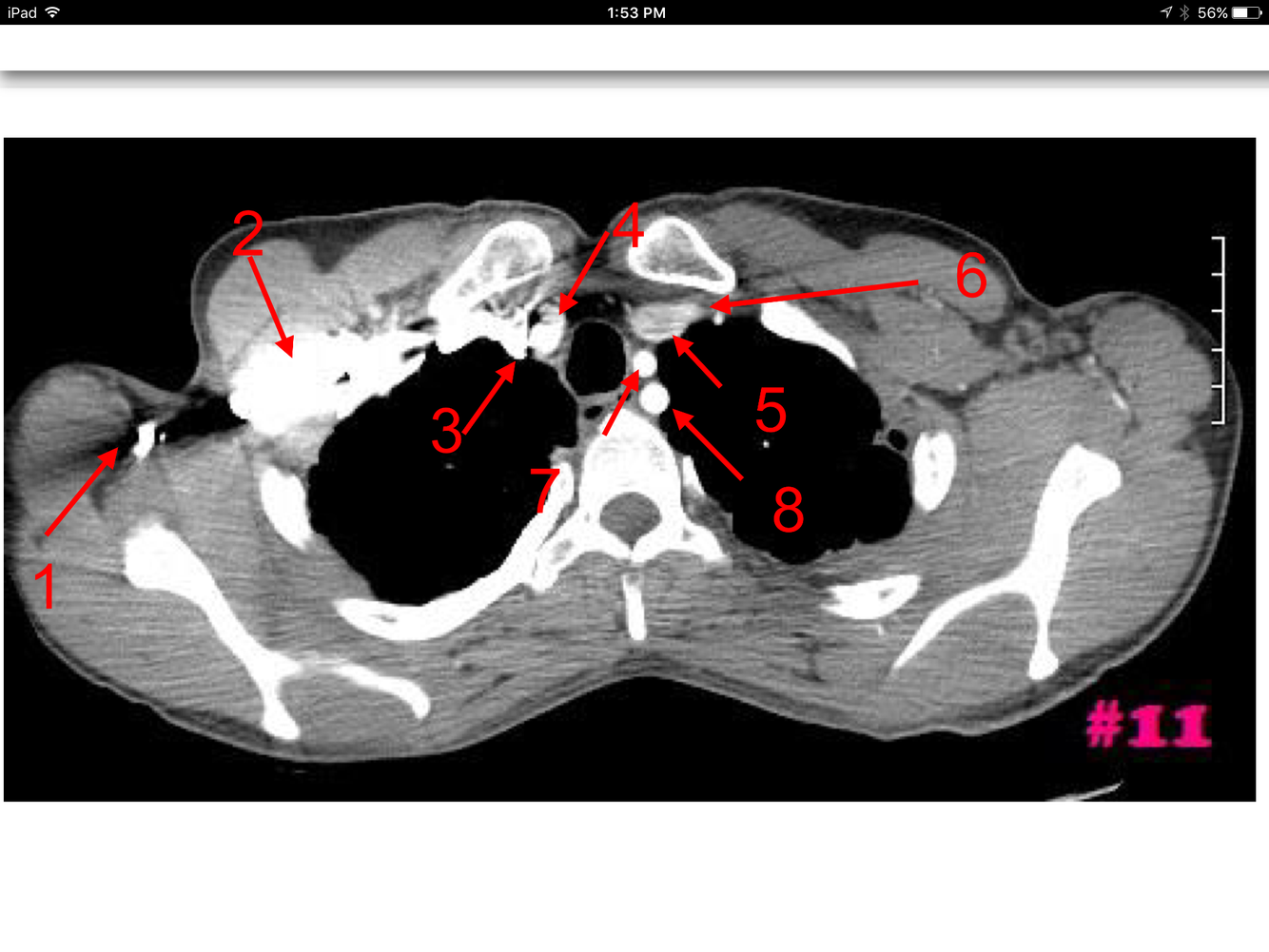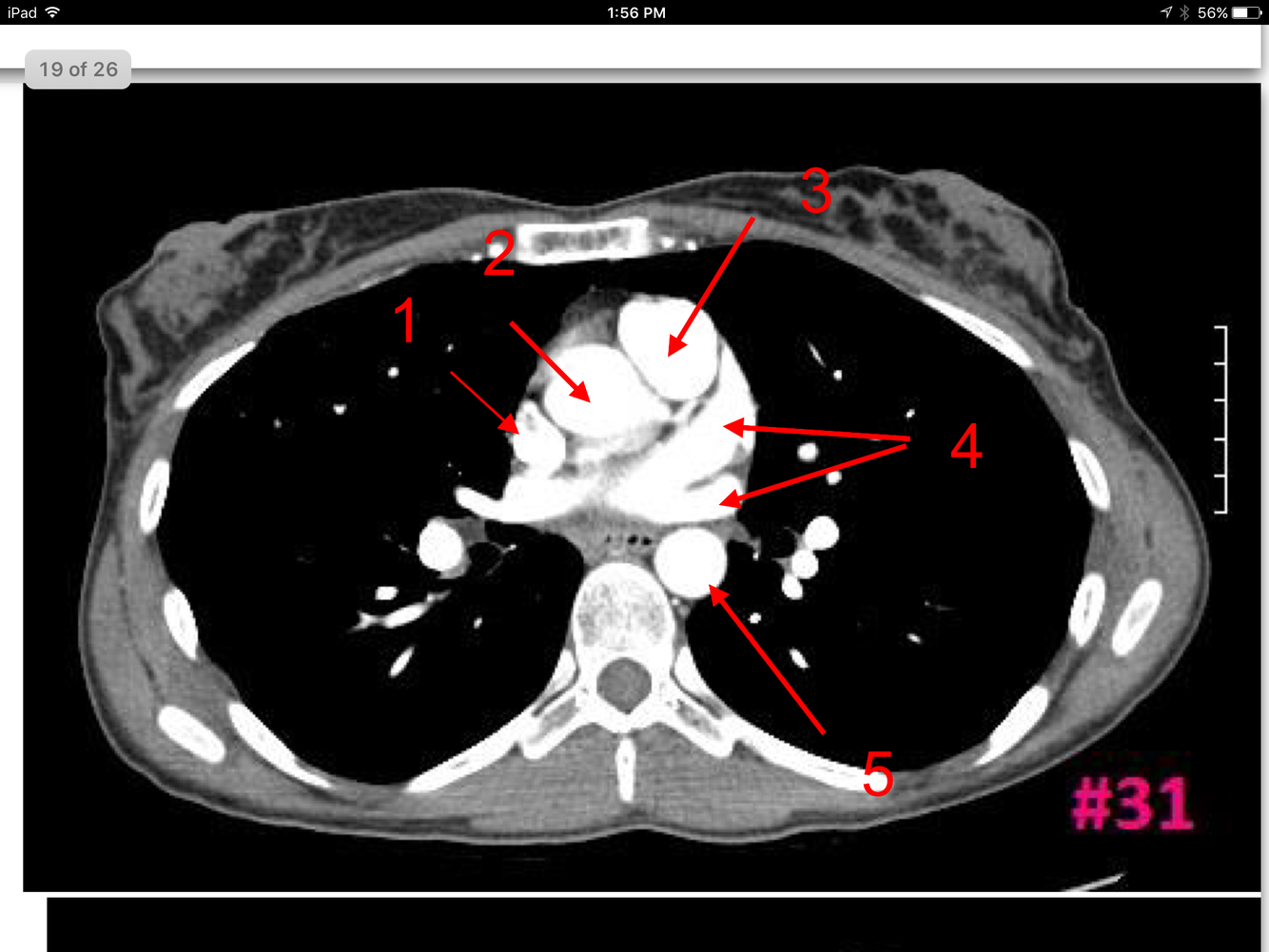 4. Inferior vena cava 5. Esophagus 7. Liver 8. Rt coronary artery