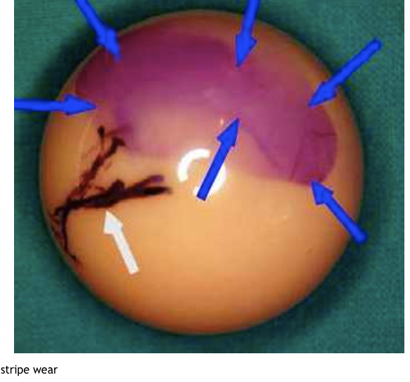 What is stripe wear seen in ceramic on ceramic bearing surfaces?