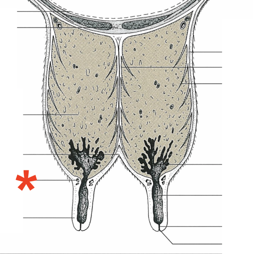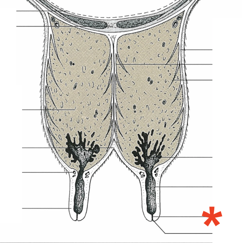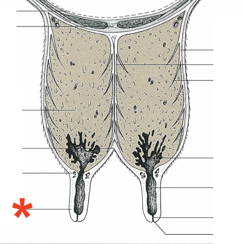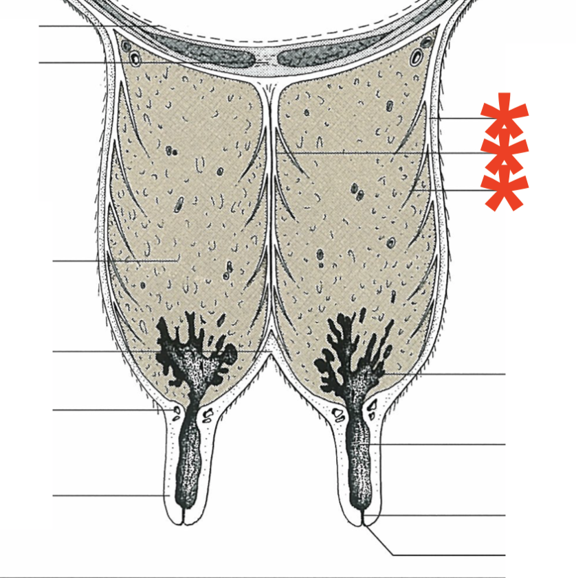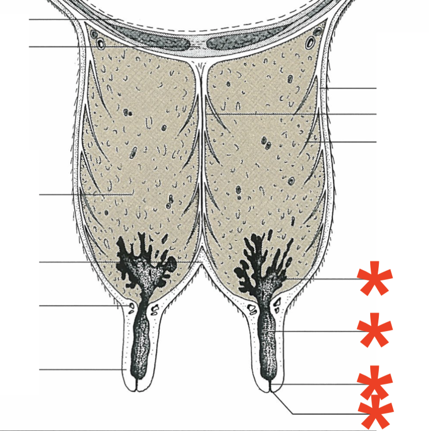 Mammary gland arrangement in bovine