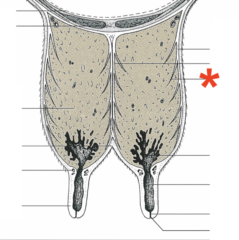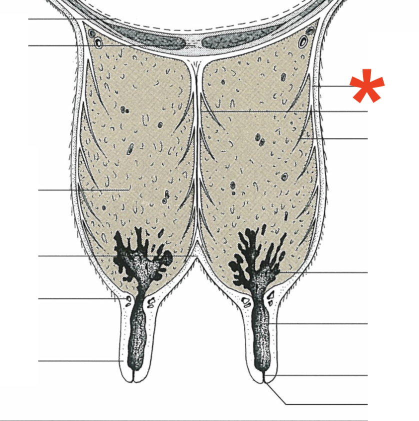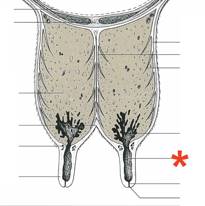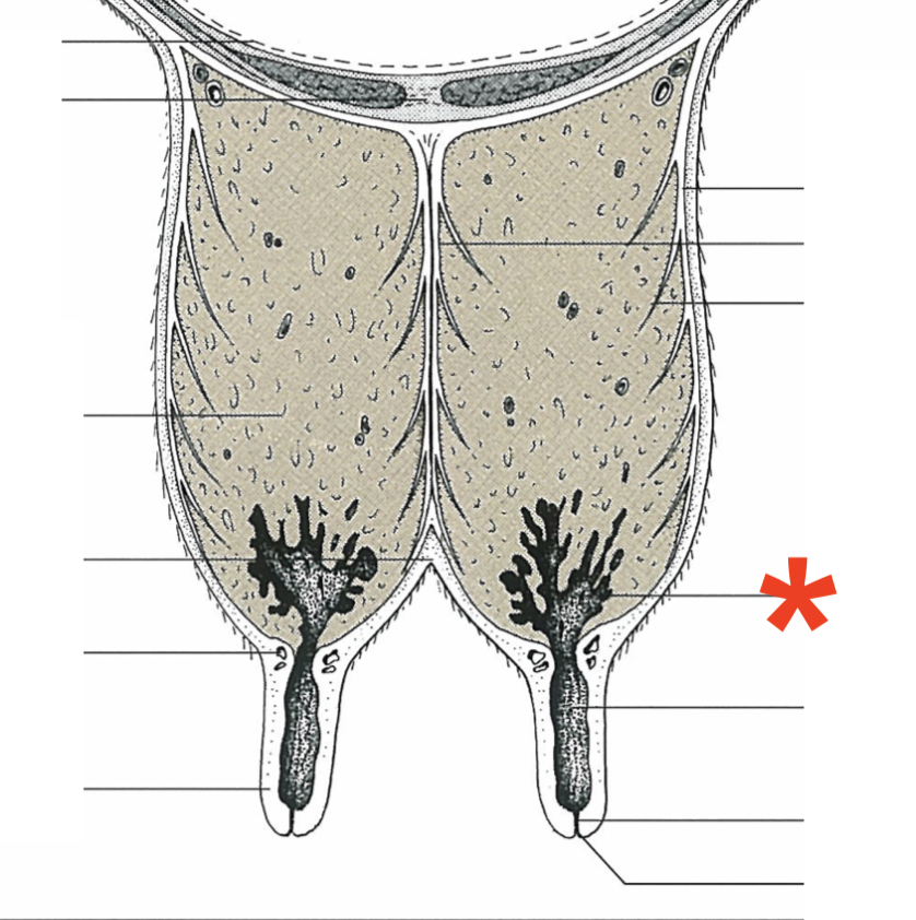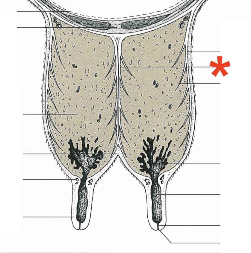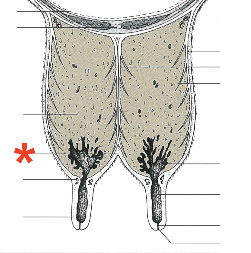 Mammary gland arrangement in bovine