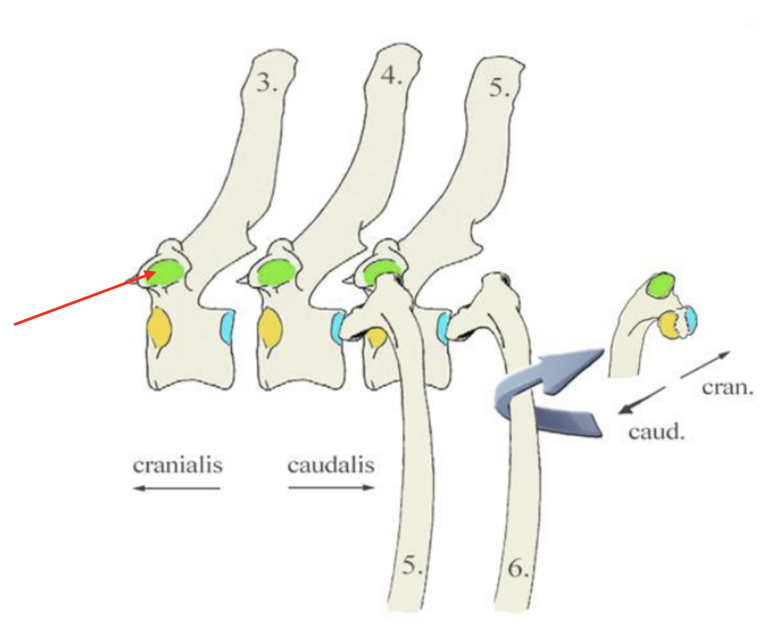 Facies articularis capitis costae caudalis ↔ Fovea costalis cranialis