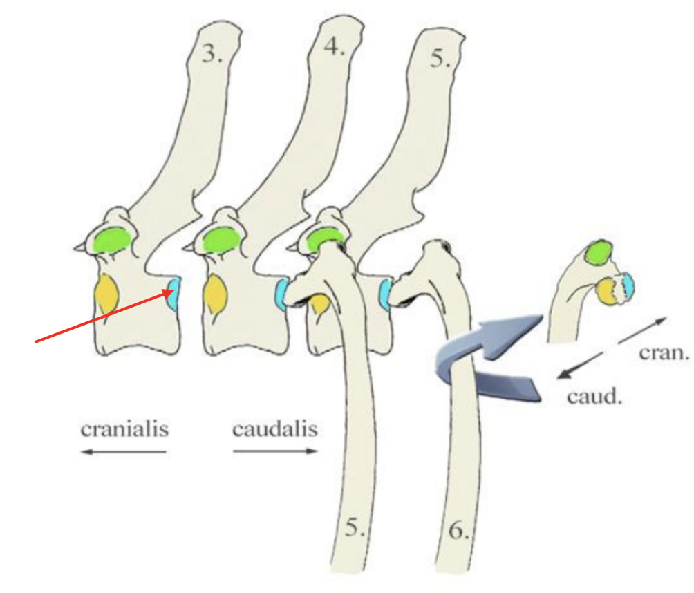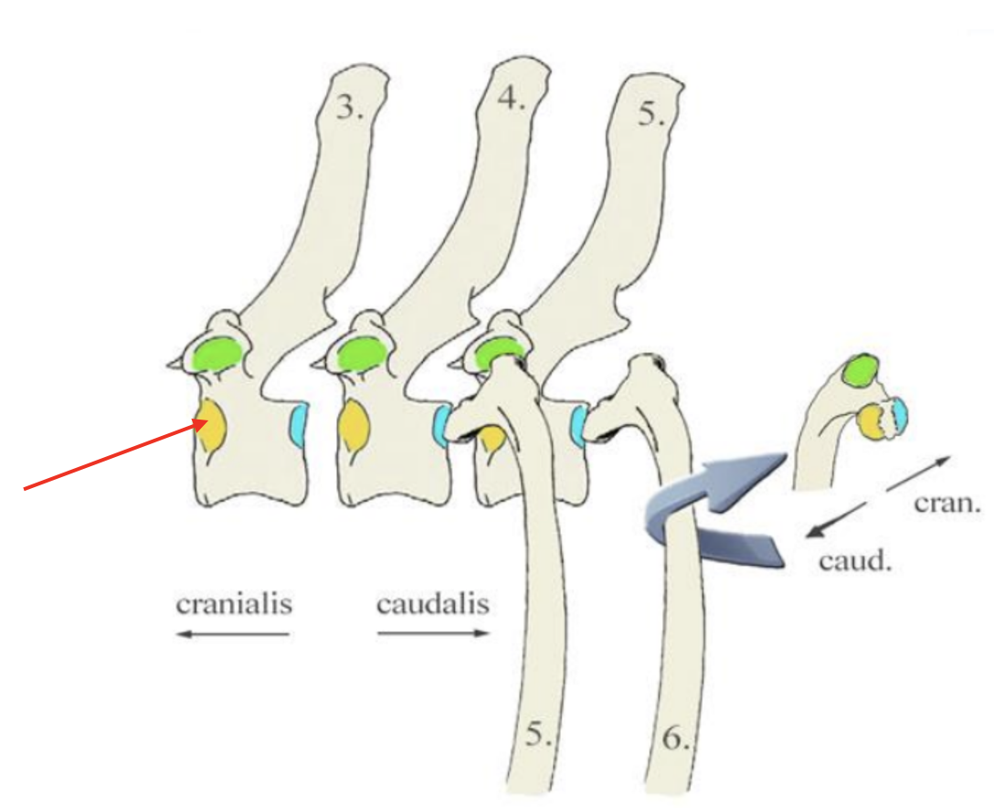 Facies articularis capitis costae cranialis ↔ Fovea costalis caudalis