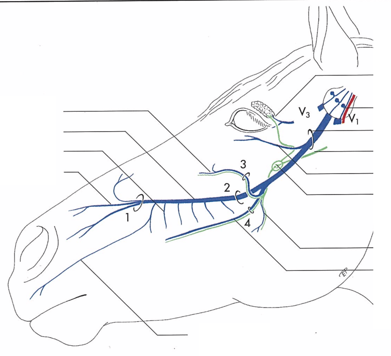 Primary branches of the maxillary nerve (CN-V2) (eq)