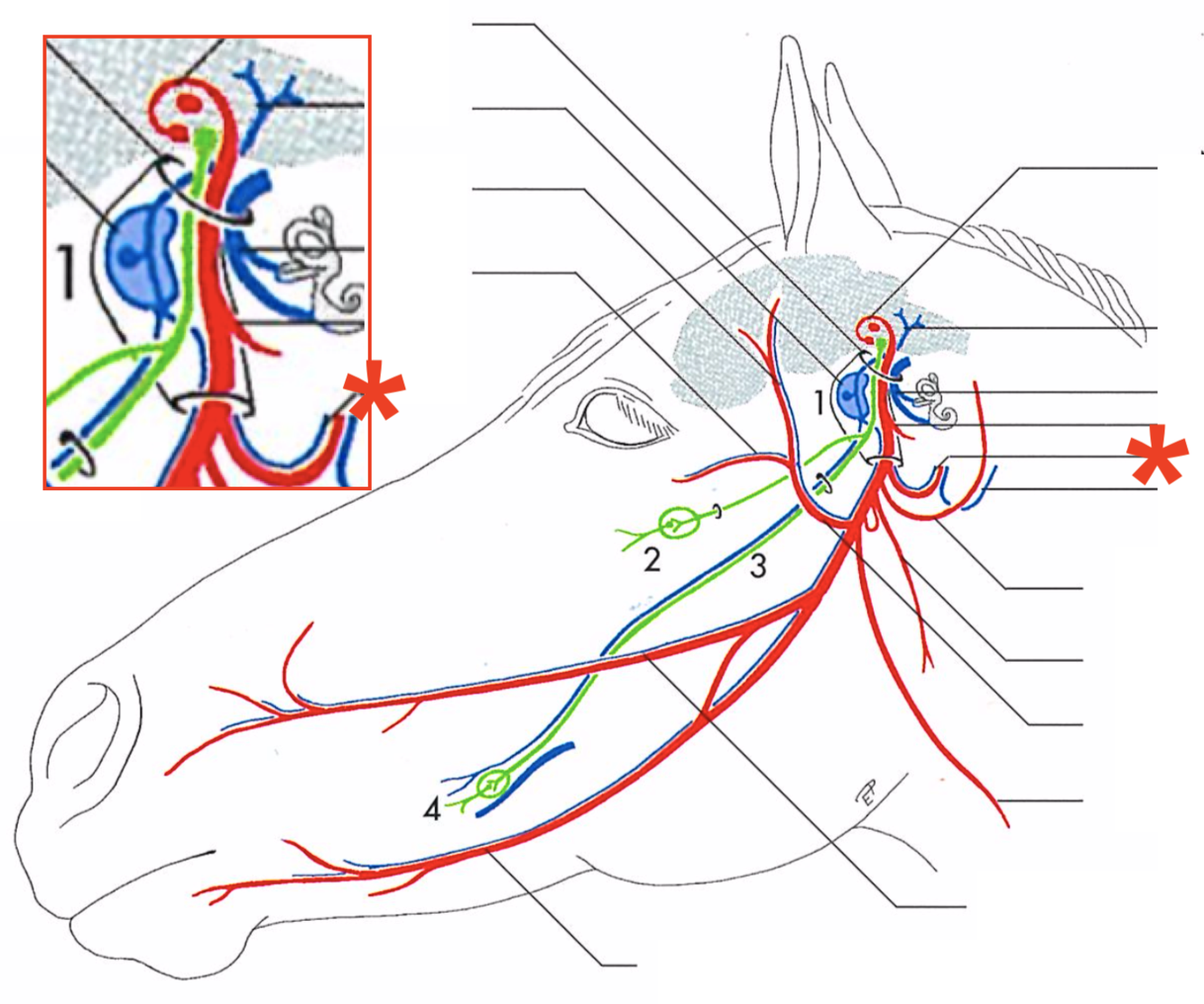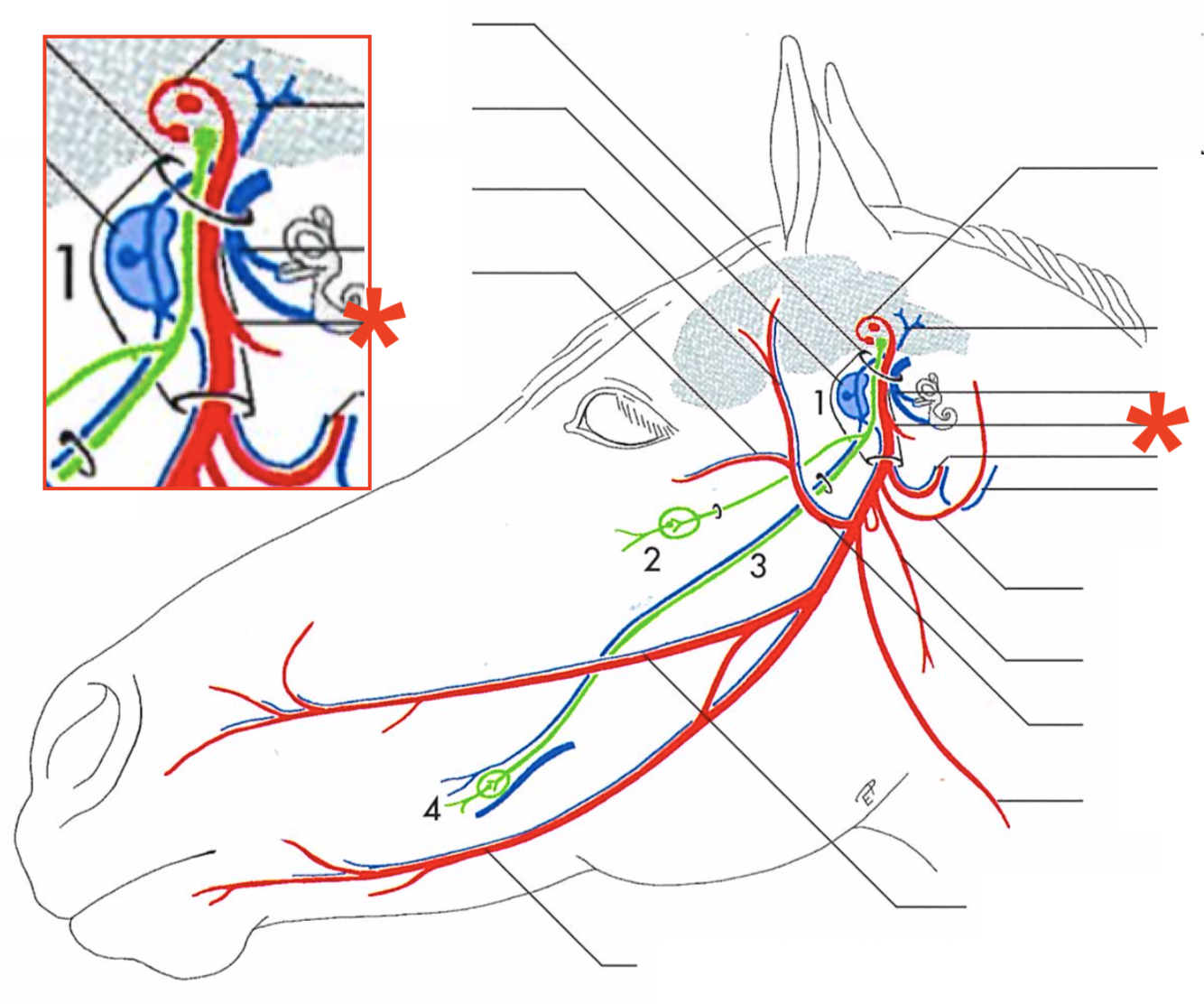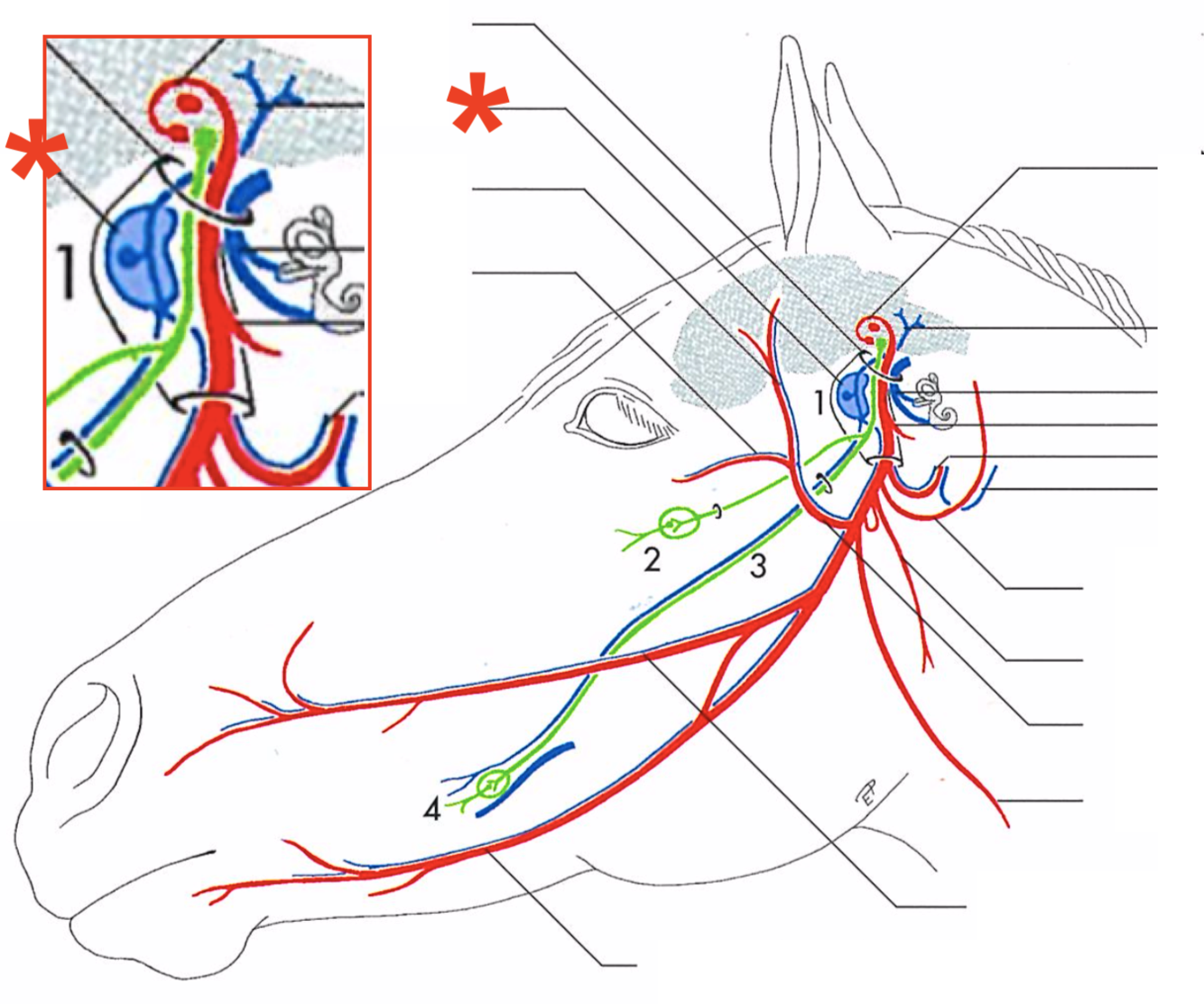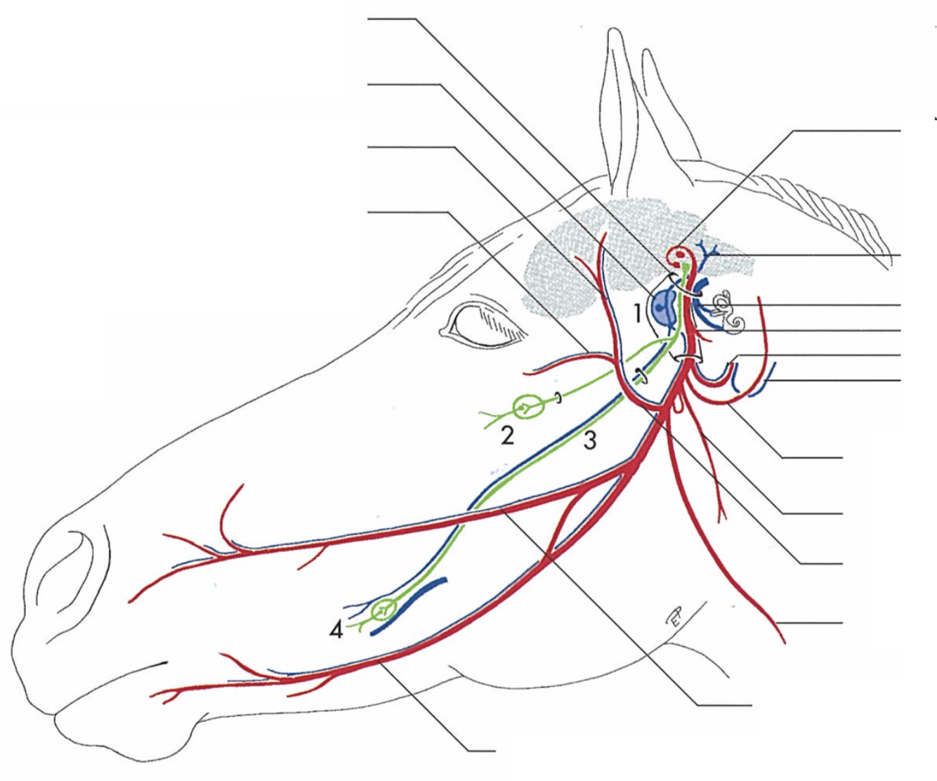 Primary branches of the facial (CN-VII) (eq)