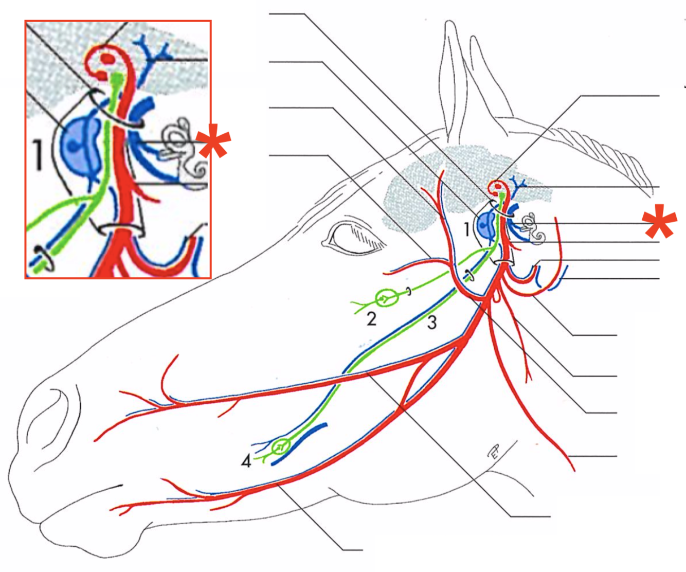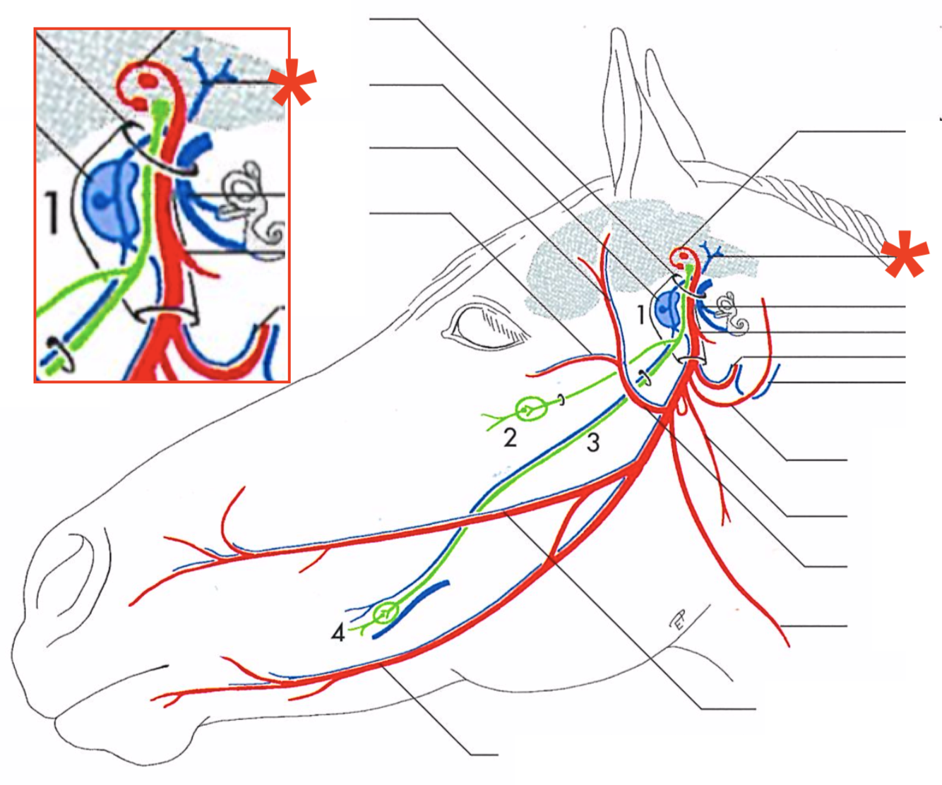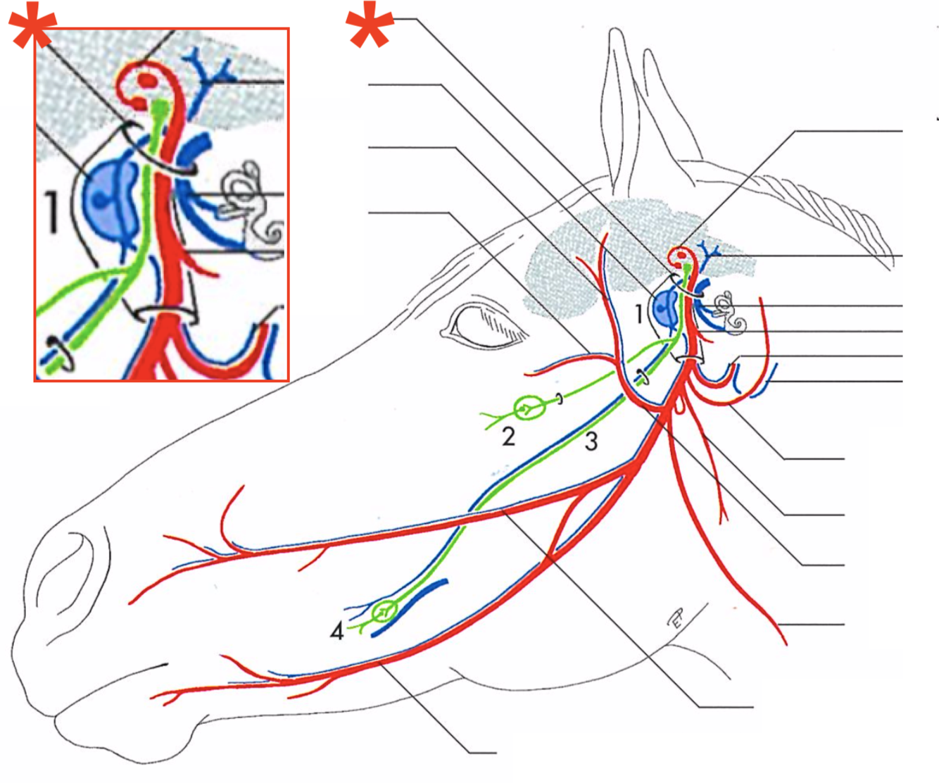 Primary branches of the facial (CN-VII) (eq)
