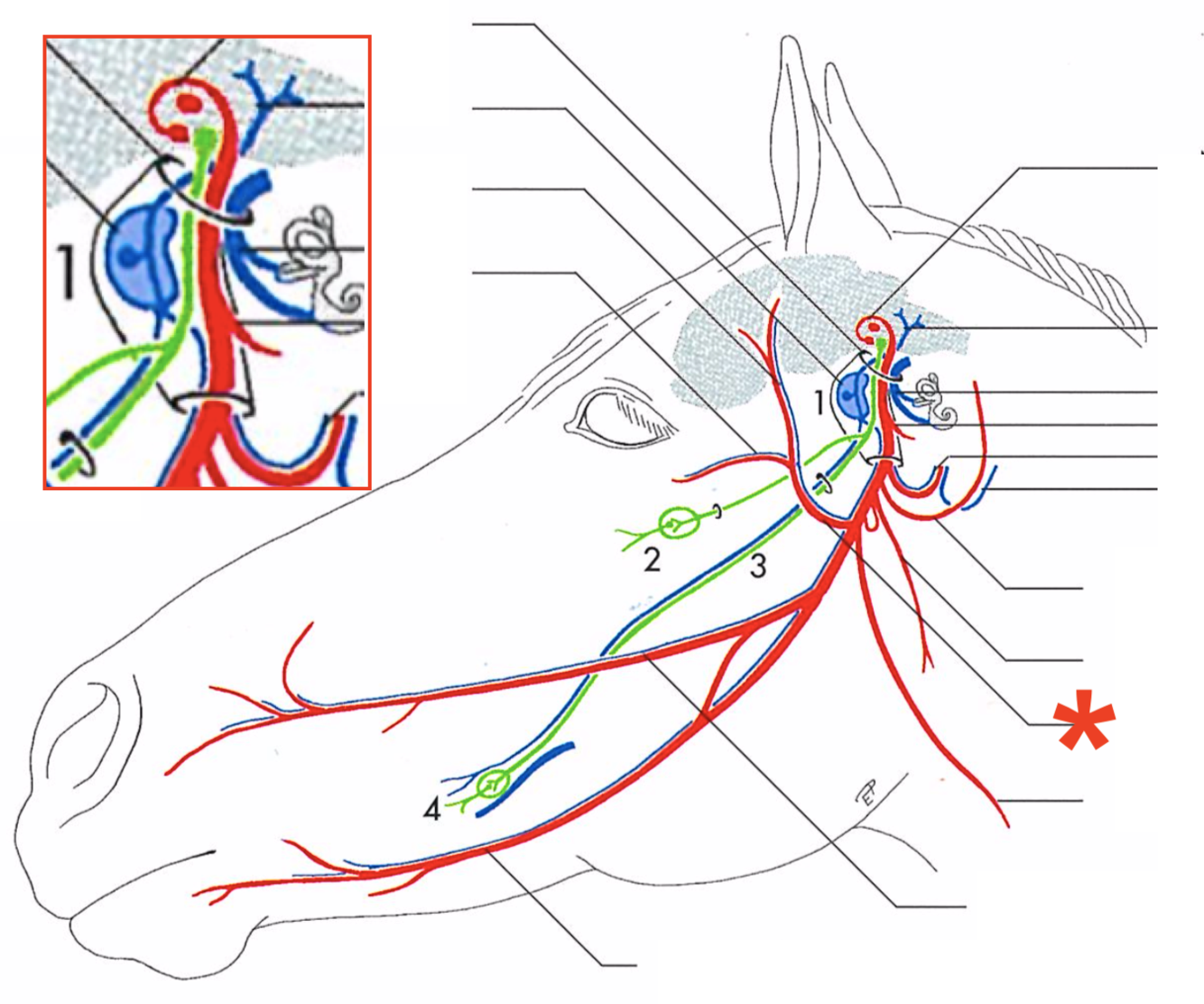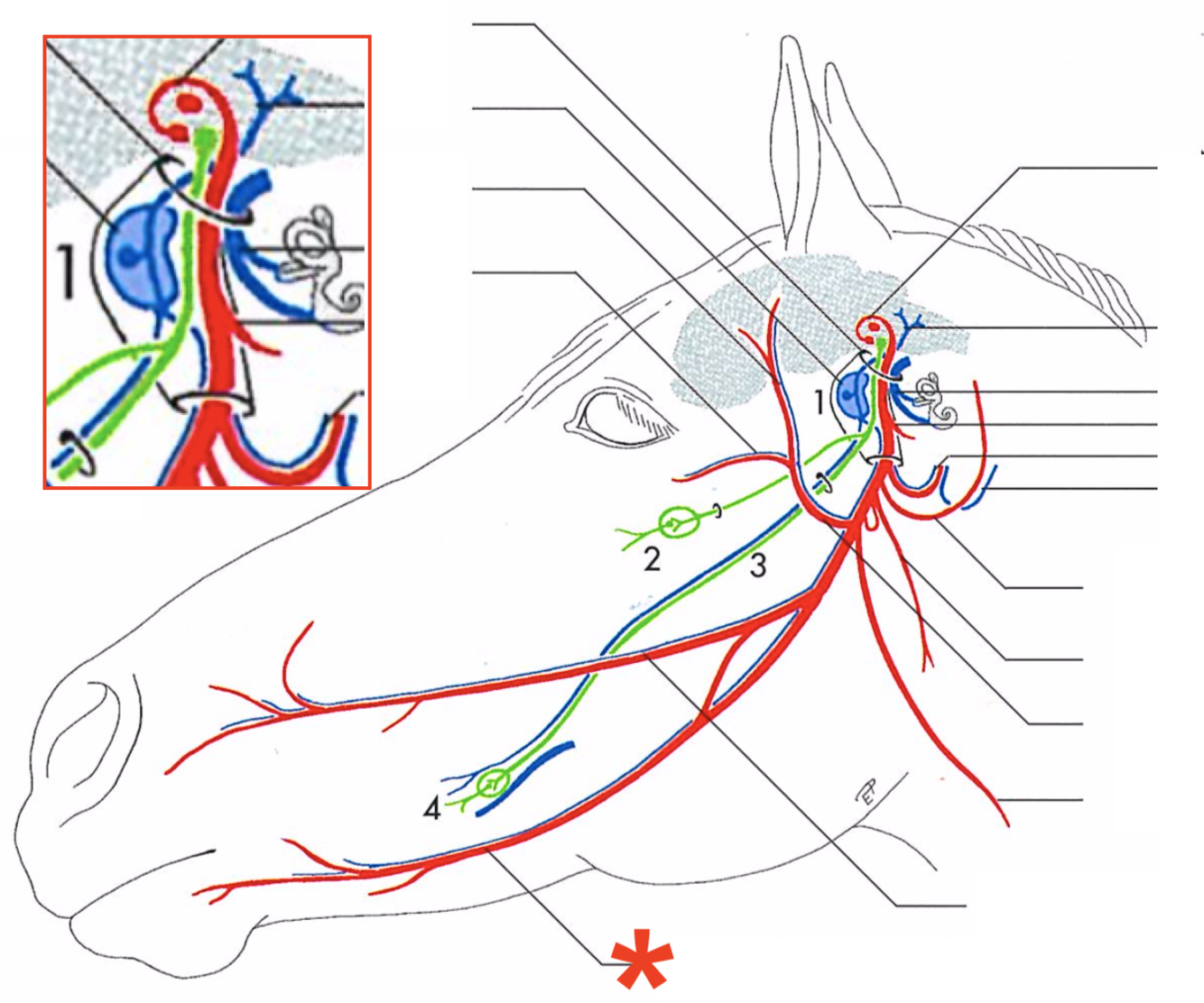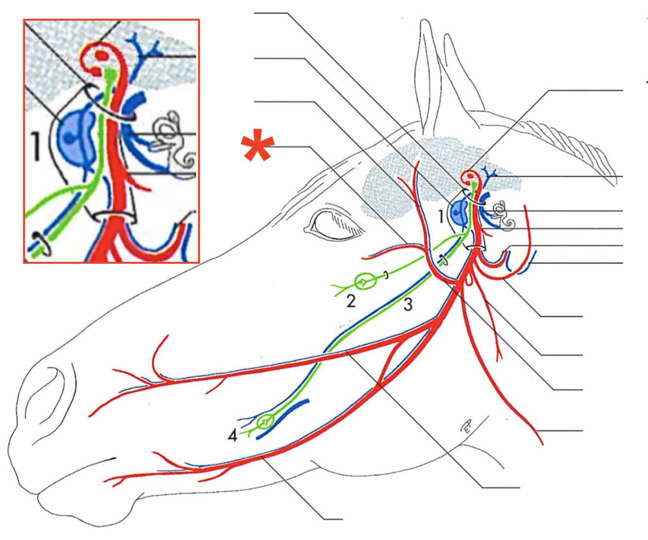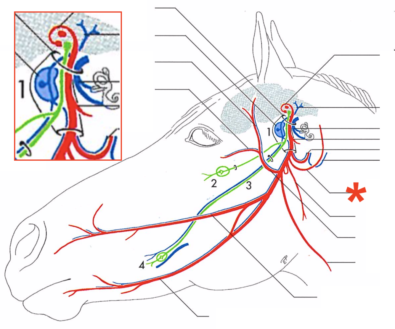 Primary branches of the facial (CN-VII) (eq)