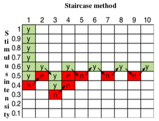 -Several intensities are systematically tested in a random order -Most accurate, but it takes a long time