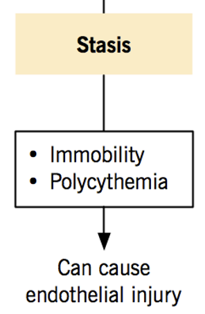 What is meant by stasis and what its caused by? (a risk factor for thrombosis)