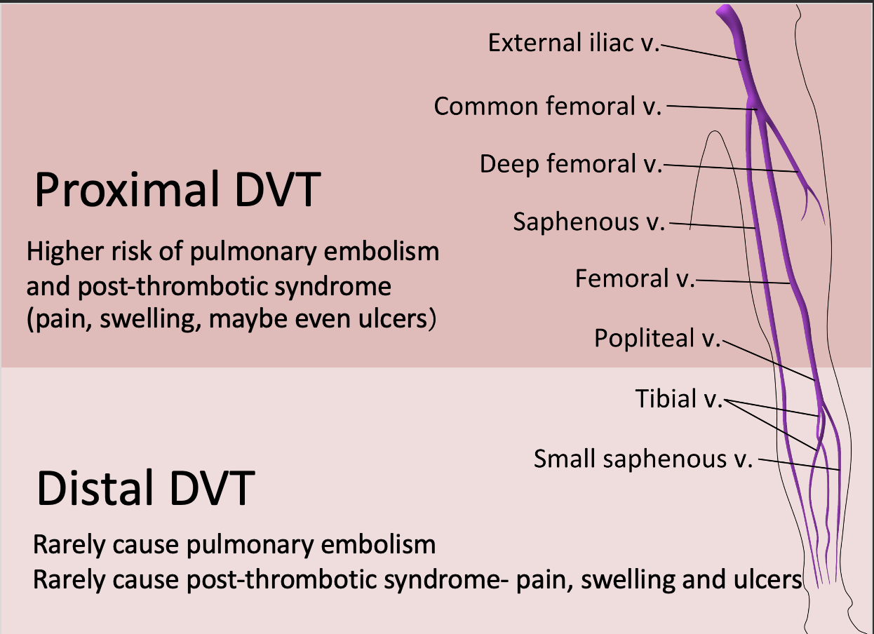 What is the difference between proximal and distal DVT