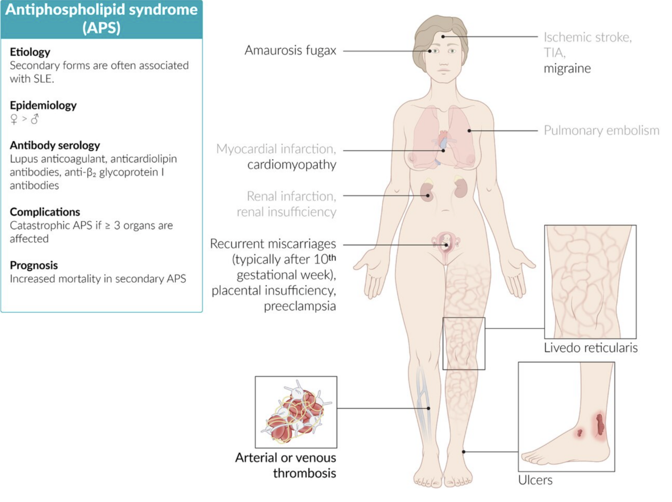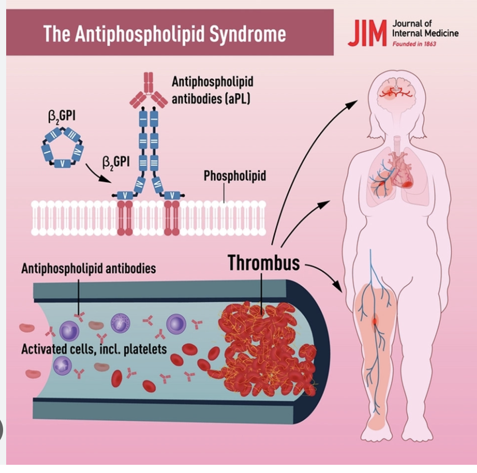 Antiphospholipid syndrome (APS) is an autoimmune disease associated with increased risk of thrombosis due to the presence of procoagulatory antibodies (e.g. lupus anticoagulatn = antiphosphoplipid auto-antibodies)