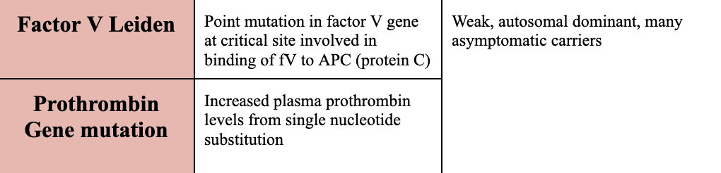 Which genetic thrombophilias are generally weaker/asymptomatic