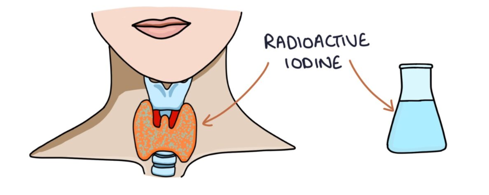 Result: reduction in thyroid cells -> less thyroid hormone is produced