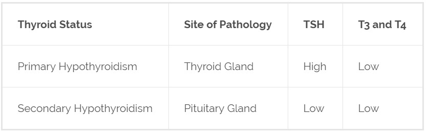 Hypothyroidism due to problems with pituitary gland (not enough TSH is produced)
