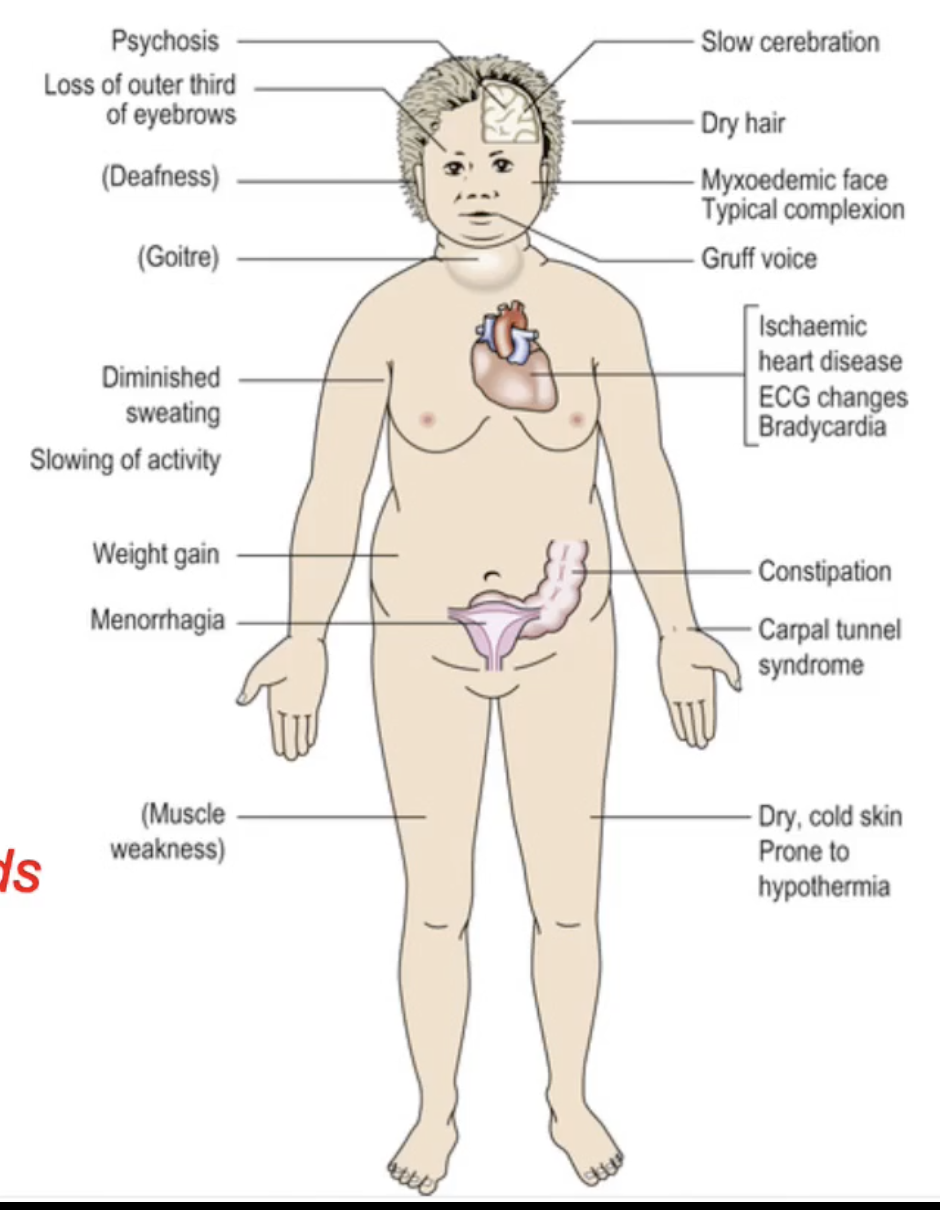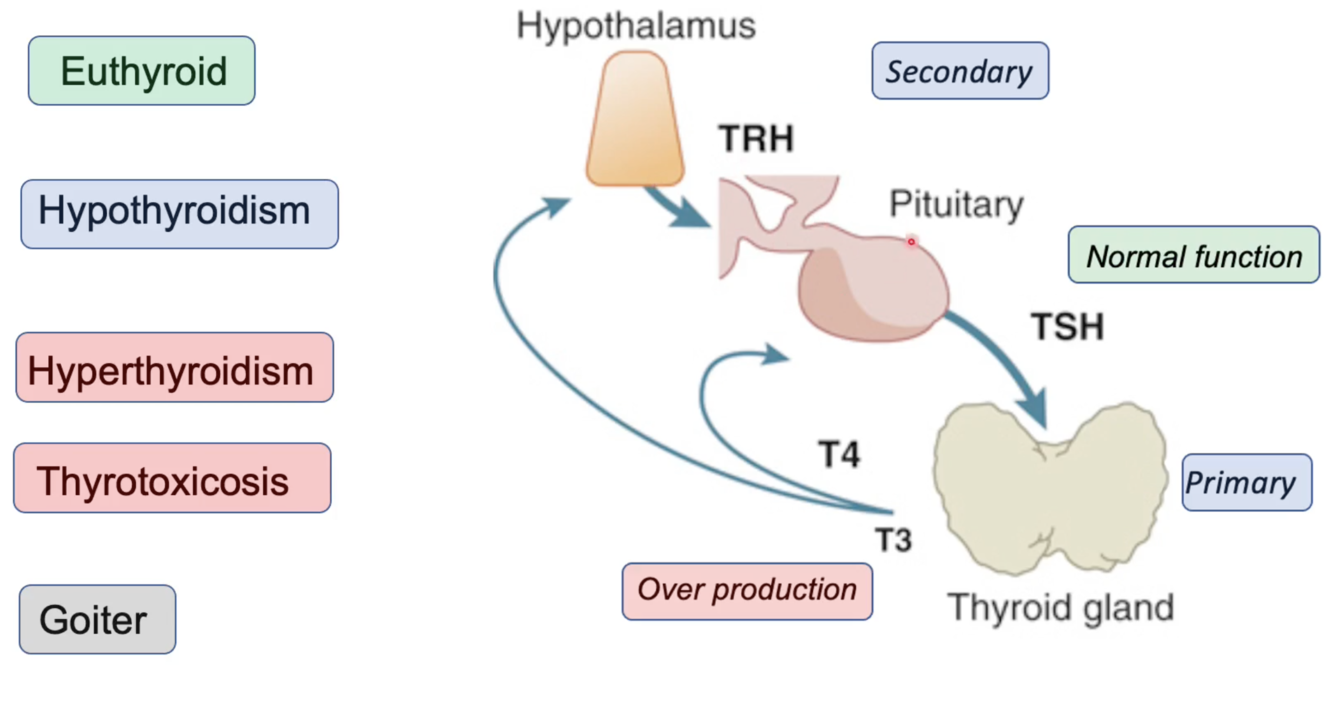 • primary = issue with thyroid gland not secreting sufficient thyroid hormones