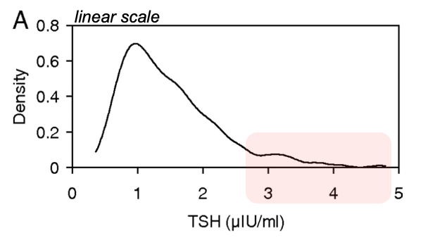 When observing a thyroid stimulating hormone (TSH) curve, what can low levels at the end of the curve, observed in the image below suggest in the patient?