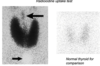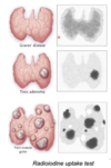- GD will have high uptake of iodine to synthesis T3 and T4 | - thyroid will also be enlarged